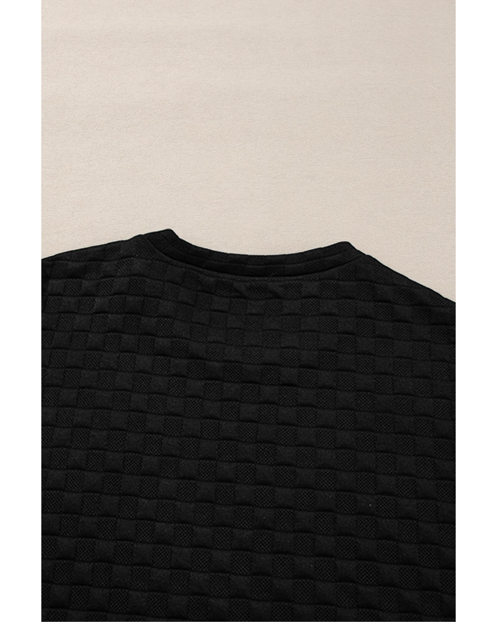 Color black Checkered Textured Split Pullover Top and Pants Set – XL