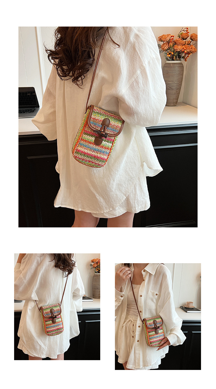 Colorful Boho Chic Woven Straw Crossbody Bag – Colourful Striped Mini Phone Pouch with Toggle Closure
