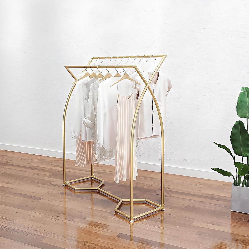 Perfect for the bedroom, walk-in closet, or clothing store, this elegant display rack enhances the aesthetic of any space. It not only showcases your clothes beautifully but also adds to the overall ambiance. The minimalist design of this display stand makes it an ideal addition to any setting.