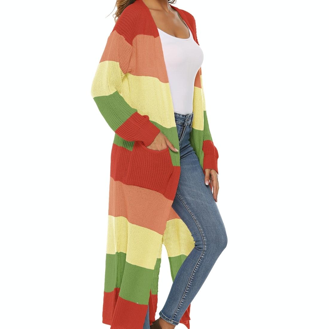 Contrast Striped Knit Sweater Blue Pink – L – Orange Green S