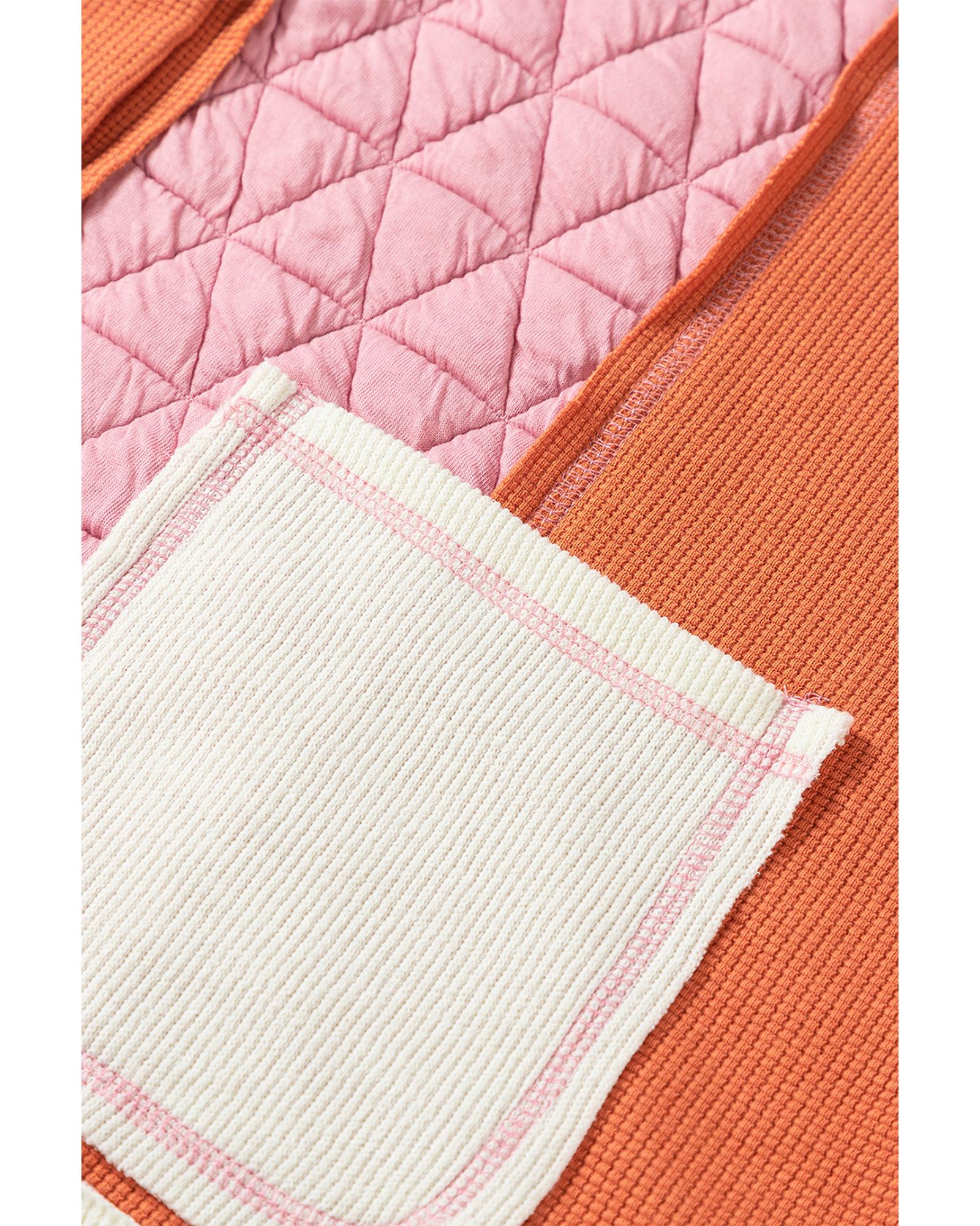 Coral Quilted Textured Patchwork Loose Fit Hooded Jacket – S