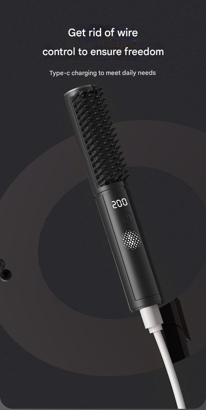 Achieve salon-quality hairstyles on the go with our Cordless Hair Straightener Comb. This innovative styling tool features a 3D staggered comb tooth design that provides strong hair gripping and an anti-scald feature, ensuring smooth styling while protecting your scalp and preventing burns. With rapid 30-second PTC constant temperature heating and NTC intelligent temperature control, it delivers even heat distribution, helps maintain hair moisture balance, and prevents heat damage. Choose from 4 intelligent constant temperature settings (140C, 160C, 180C, 200C) to suit various hair types, from damaged to coarse hair. Its wireless, portable design with convenient Type-C charging makes it perfect for straightening, creating inward curls, styling bangs, or achieving voluminous looks anytime, anywhere. Easy to use with a long-press 3-second start function and clear temperature display.