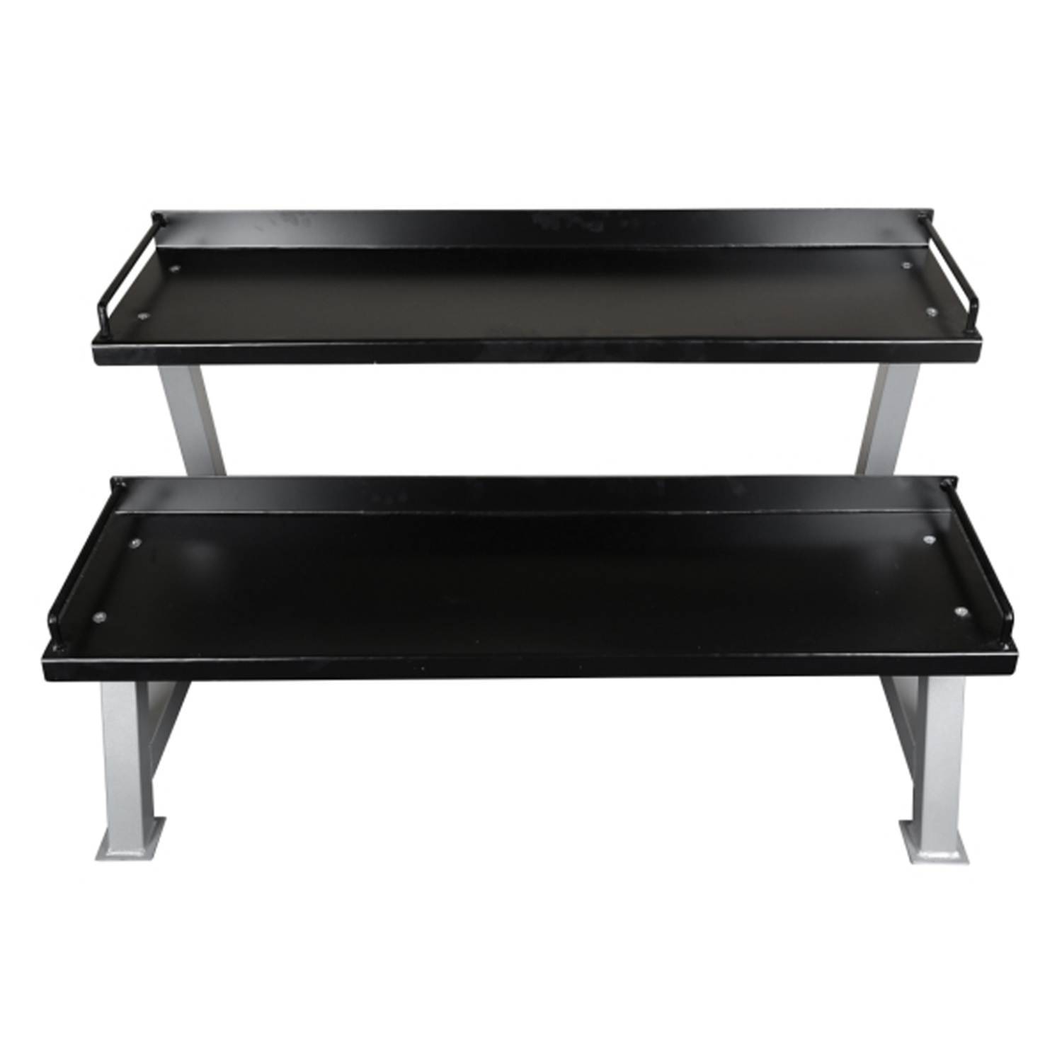 Our 2-tier Kettlebell Rack will help store your weights and bars conveniently.