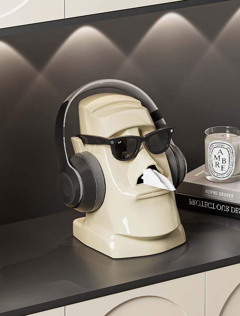 Cream White Versatile Desktop Headphone Stand & Tissue Box (23.5x17x14.5cm)