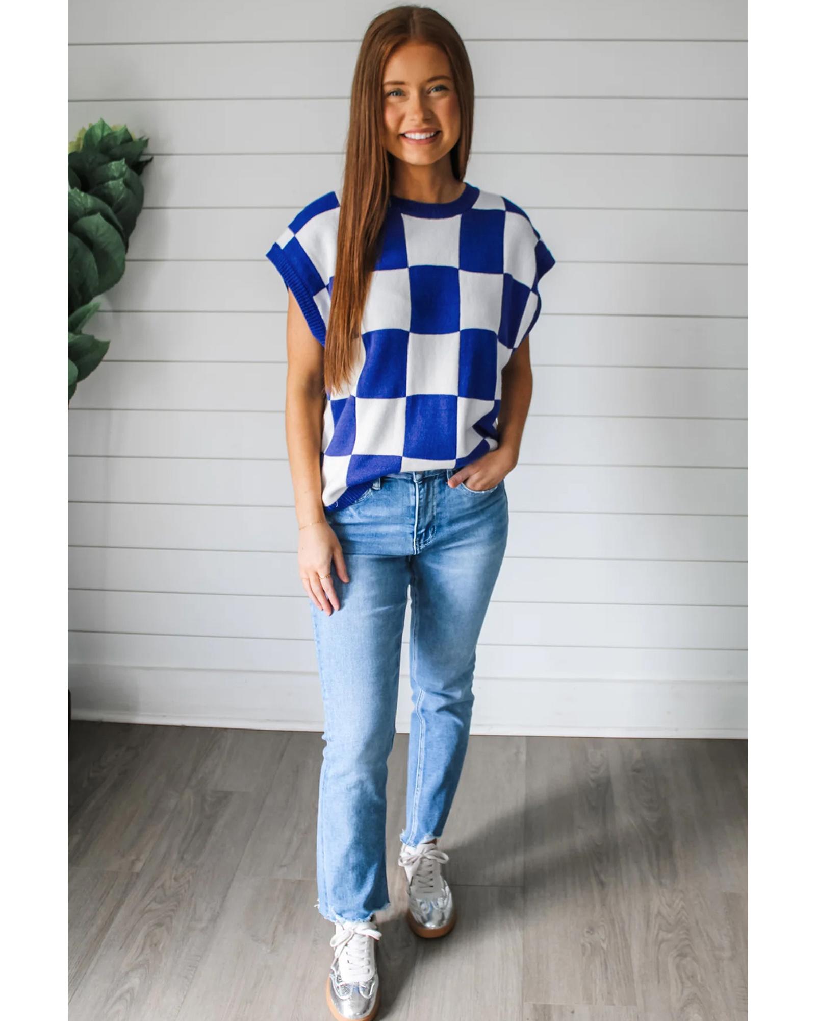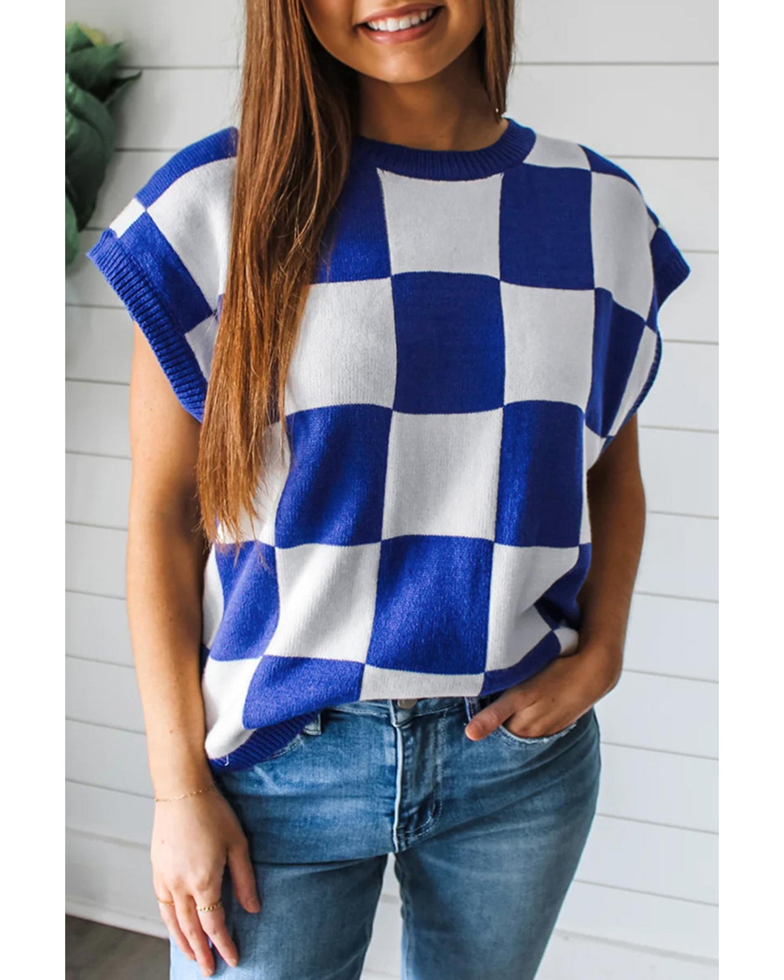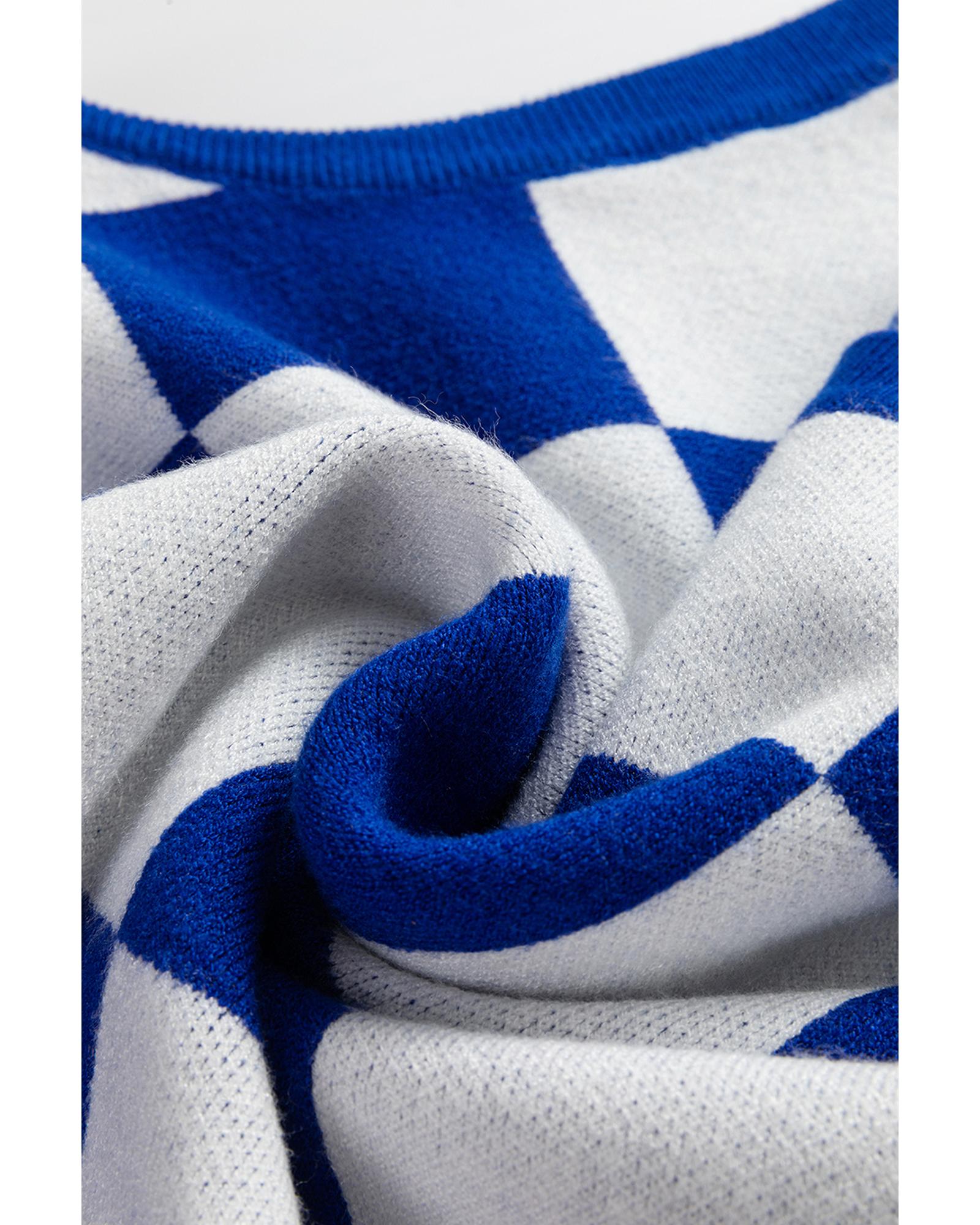 Dark Blue Cherckerboard Round Neck Sweater Vest – L