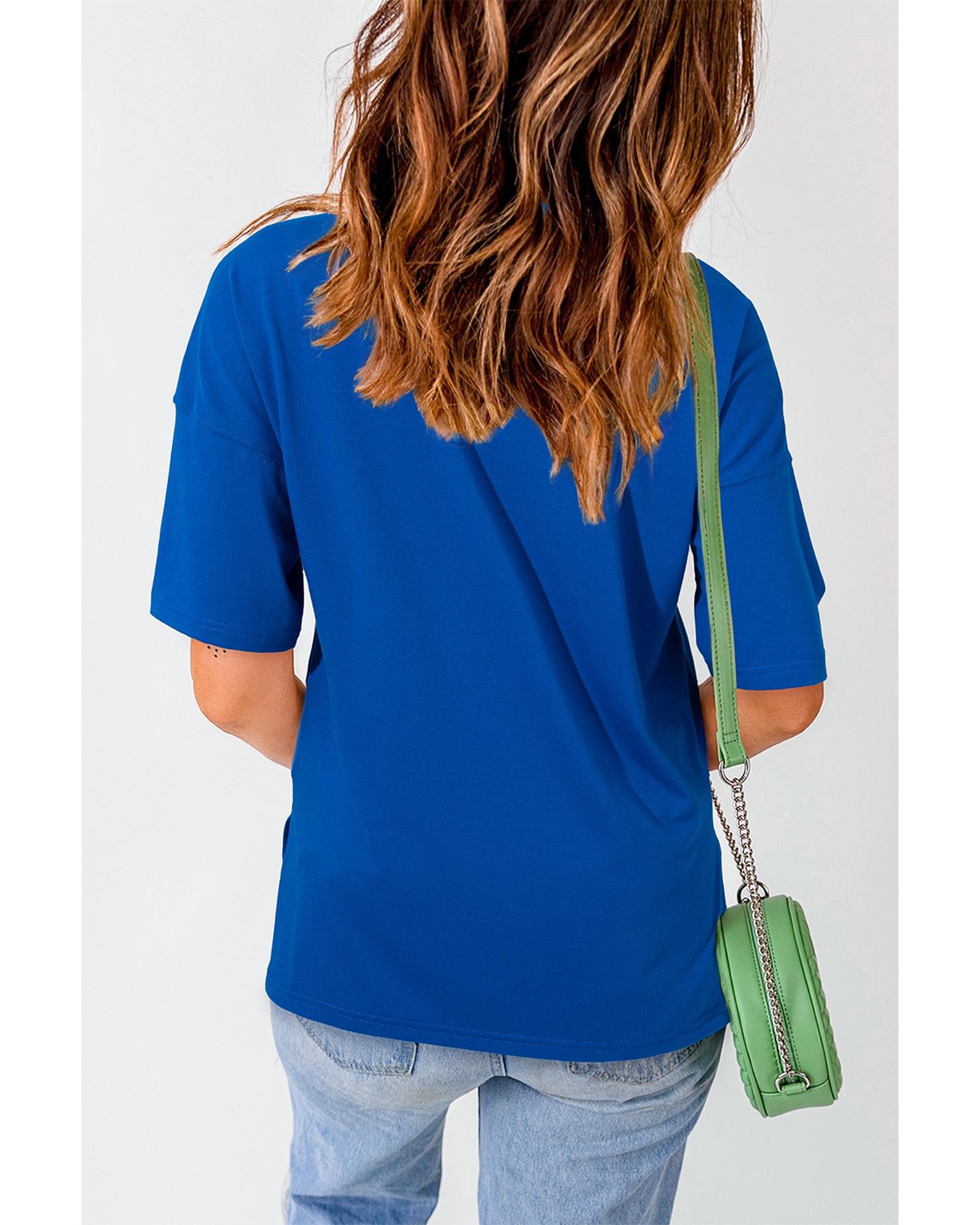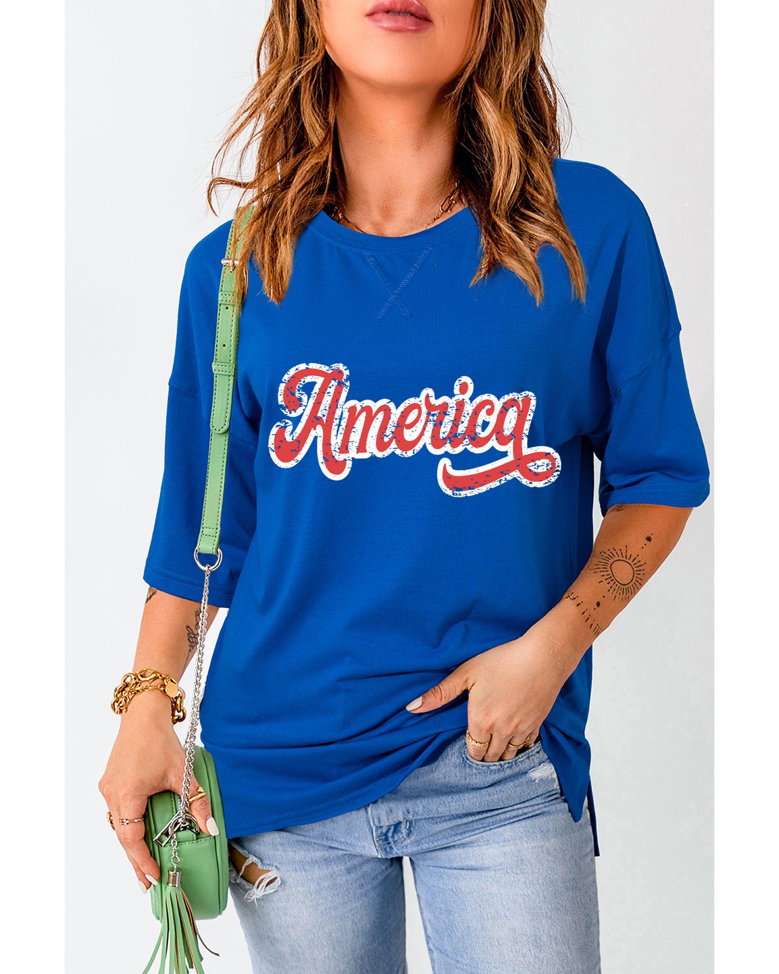 Dark Blue Contrast America Graphic Drop Shoulder Tee – M