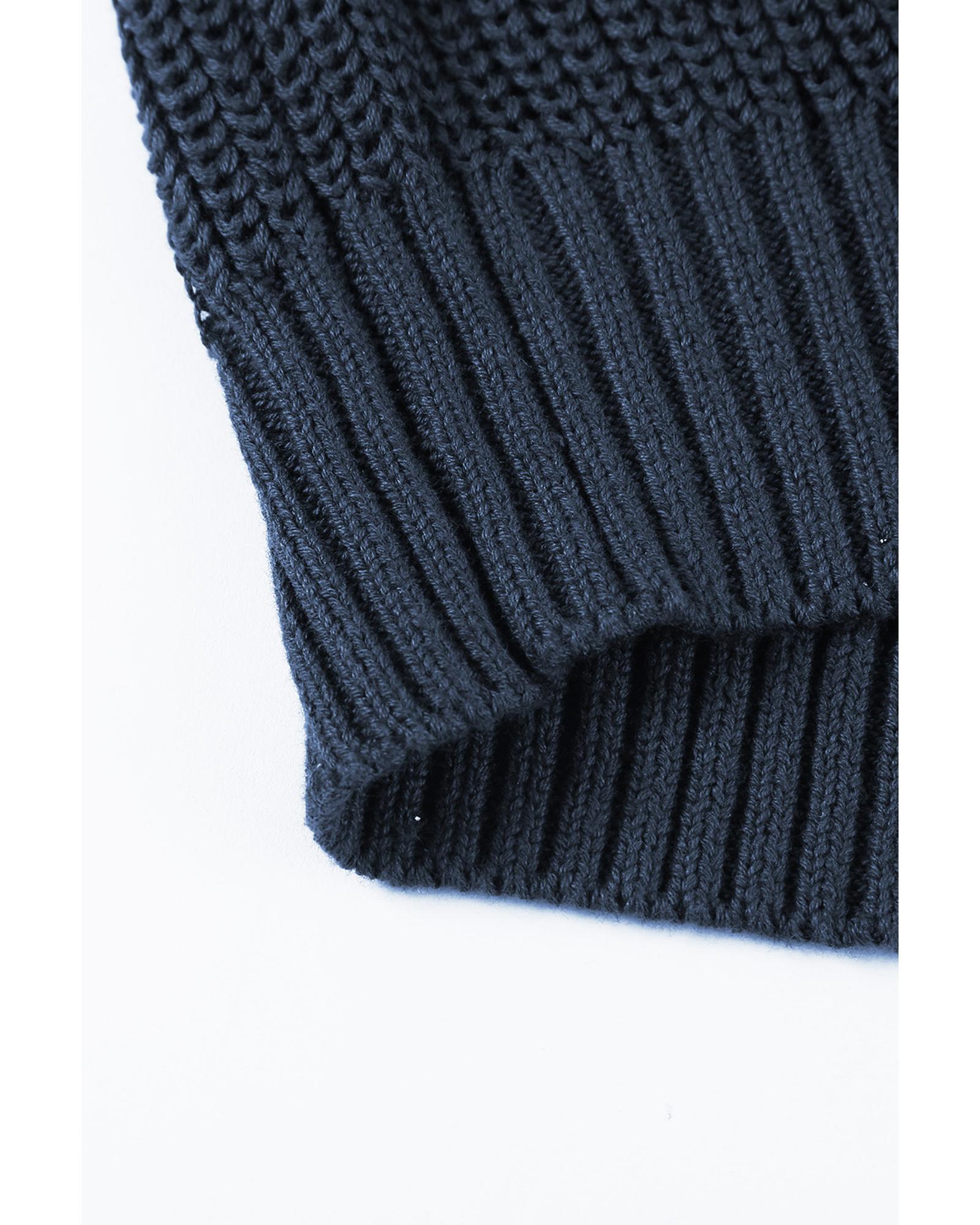 Black Eyelet Pattern Detail V Neck Drop Shoulder Sweater - XL