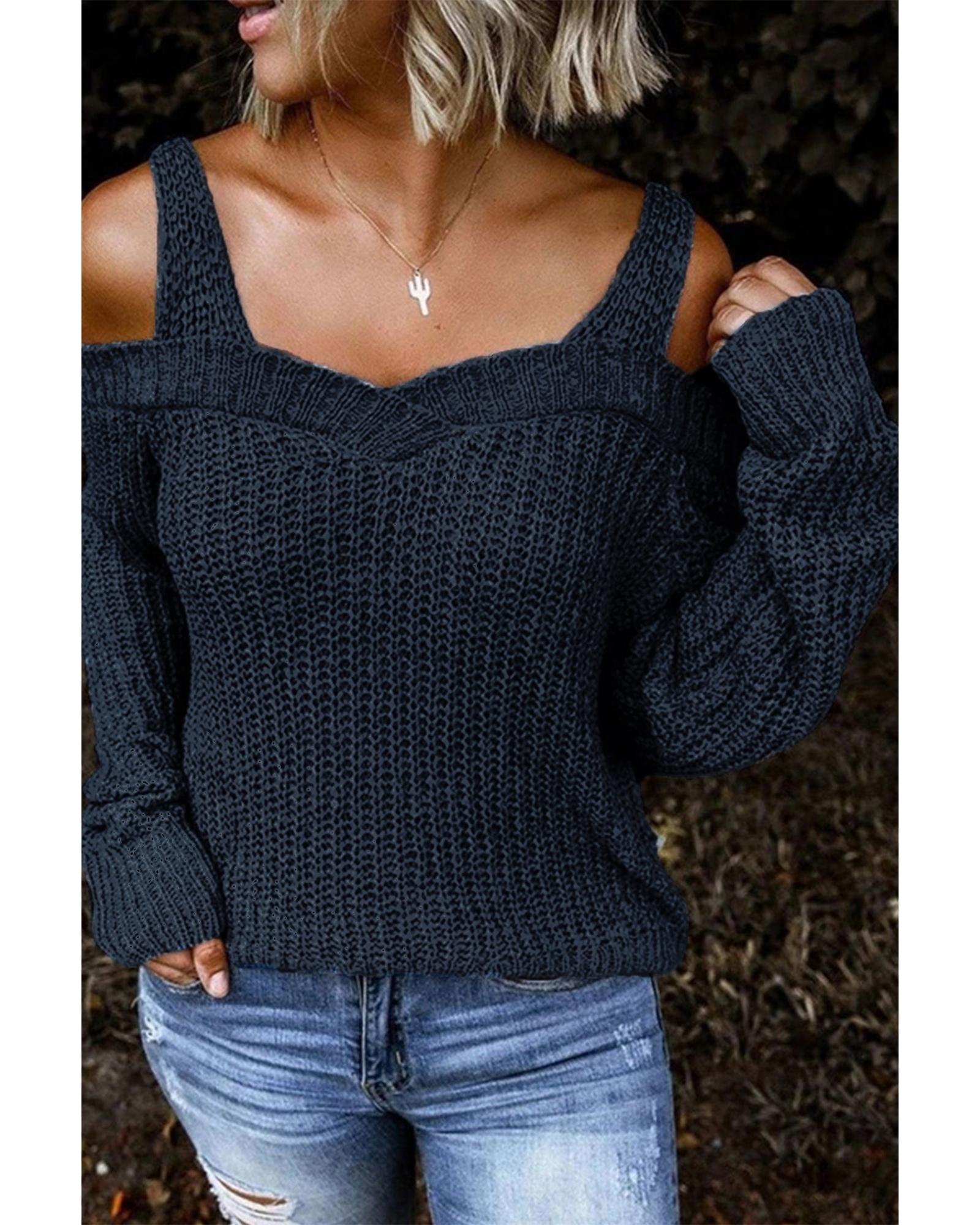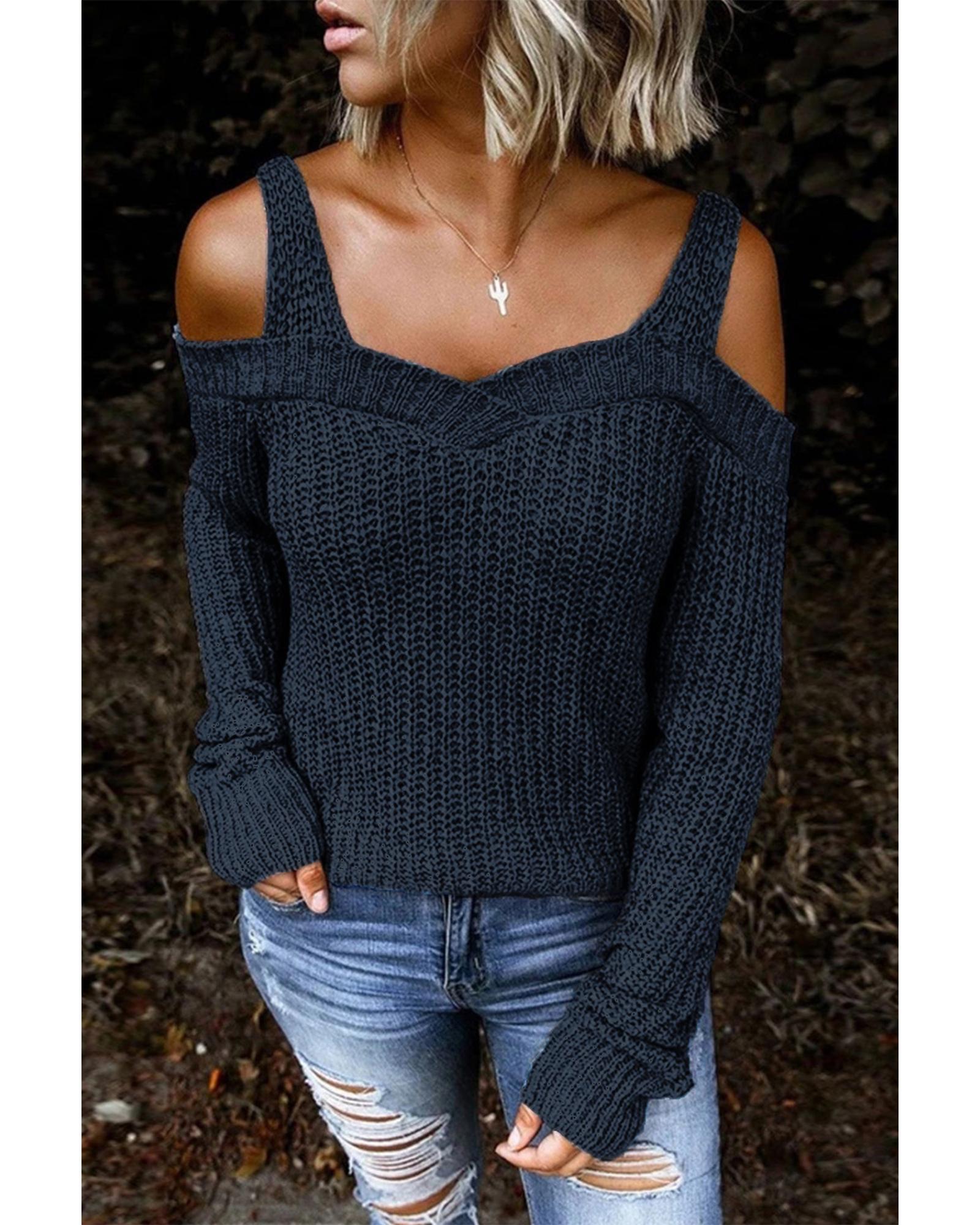 Dark Blue Dew Shoulder Juliette Knitted Sweater – S