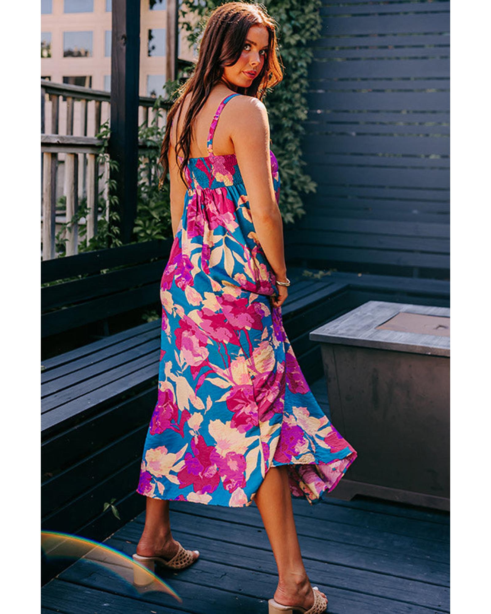 Dark Blue Floral High Waist Sleeveless Flared Long Dress – L