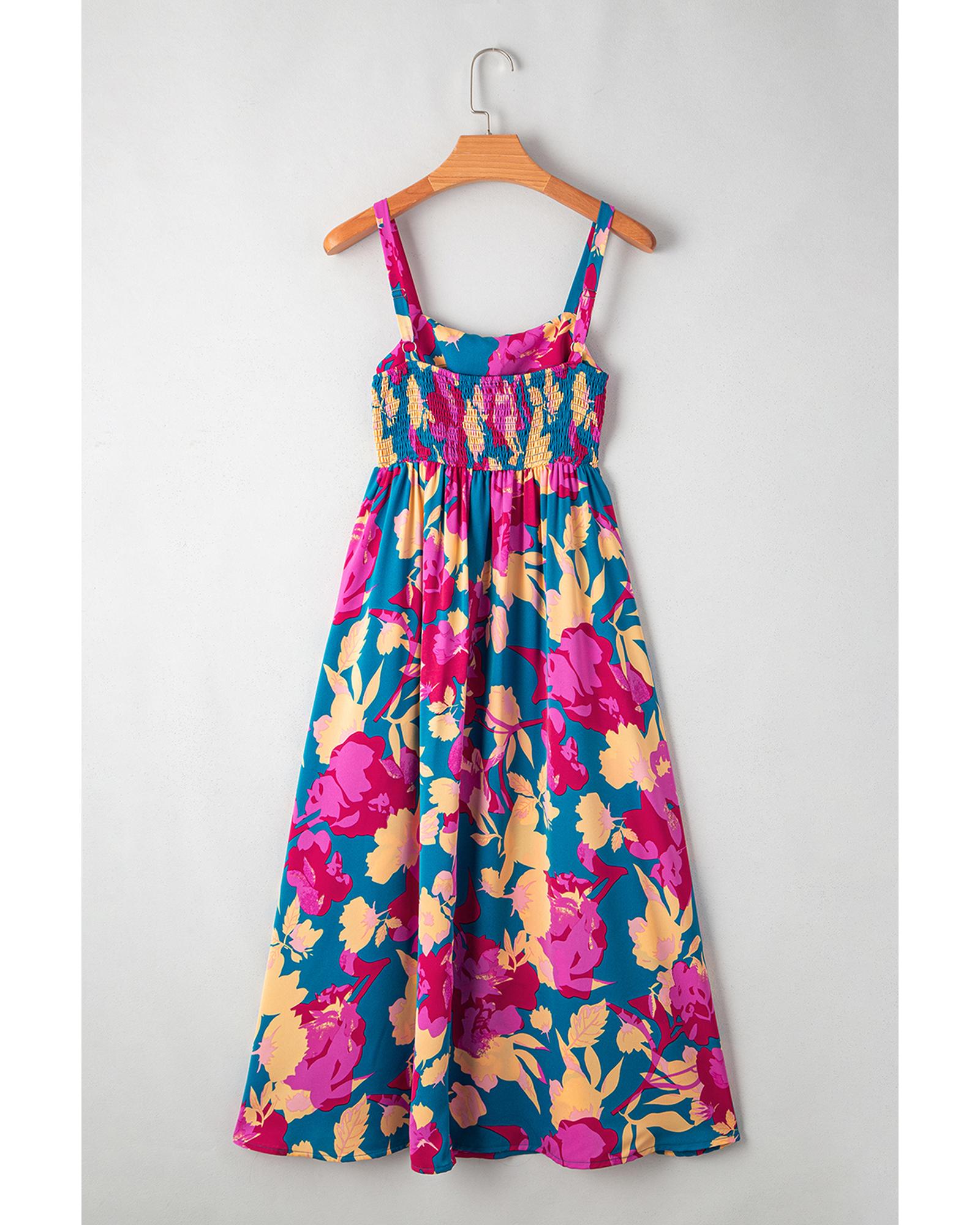 Azura Exchange Multicolor Boho Floral Collared Long Sleeve Ruffled Dress - M
