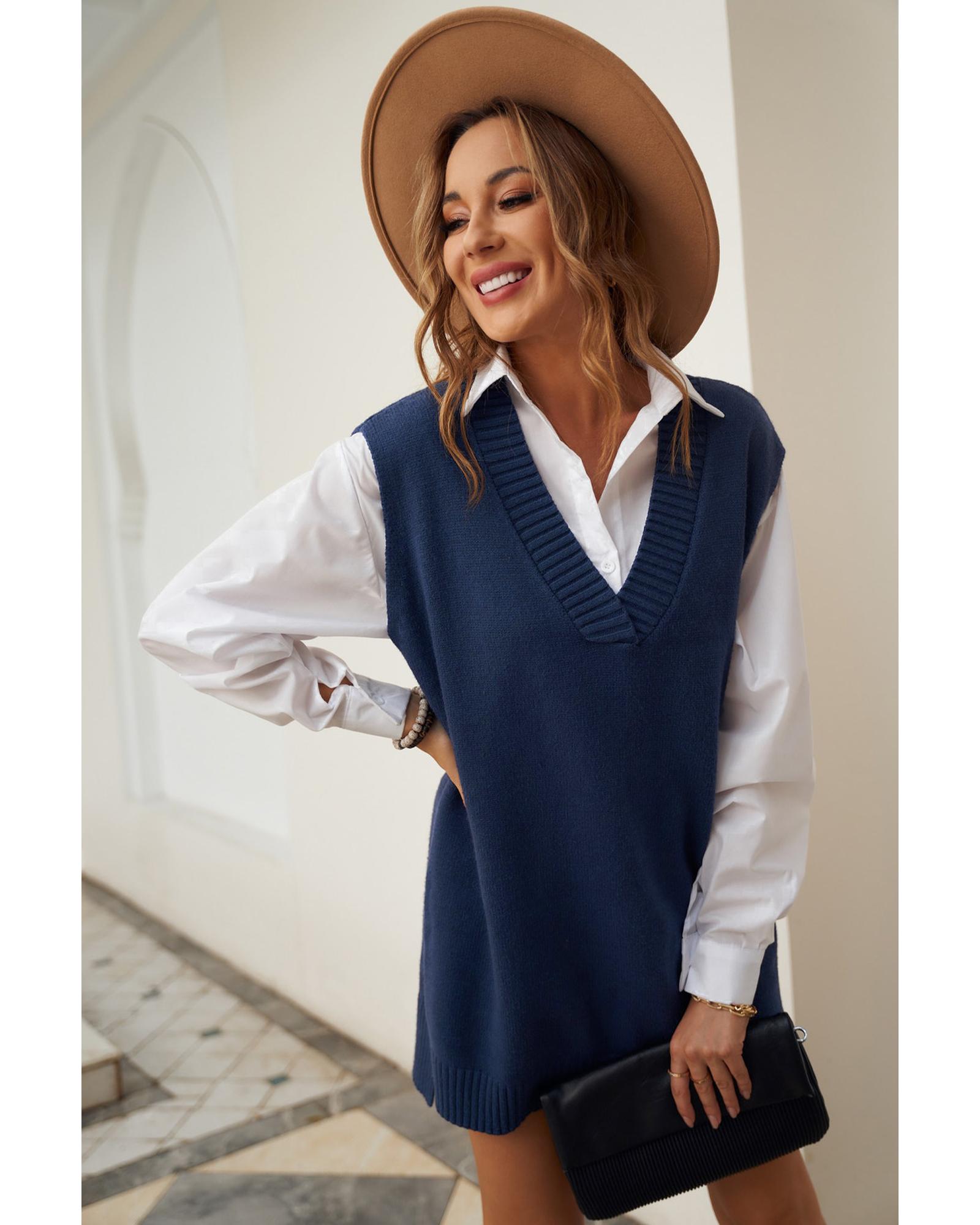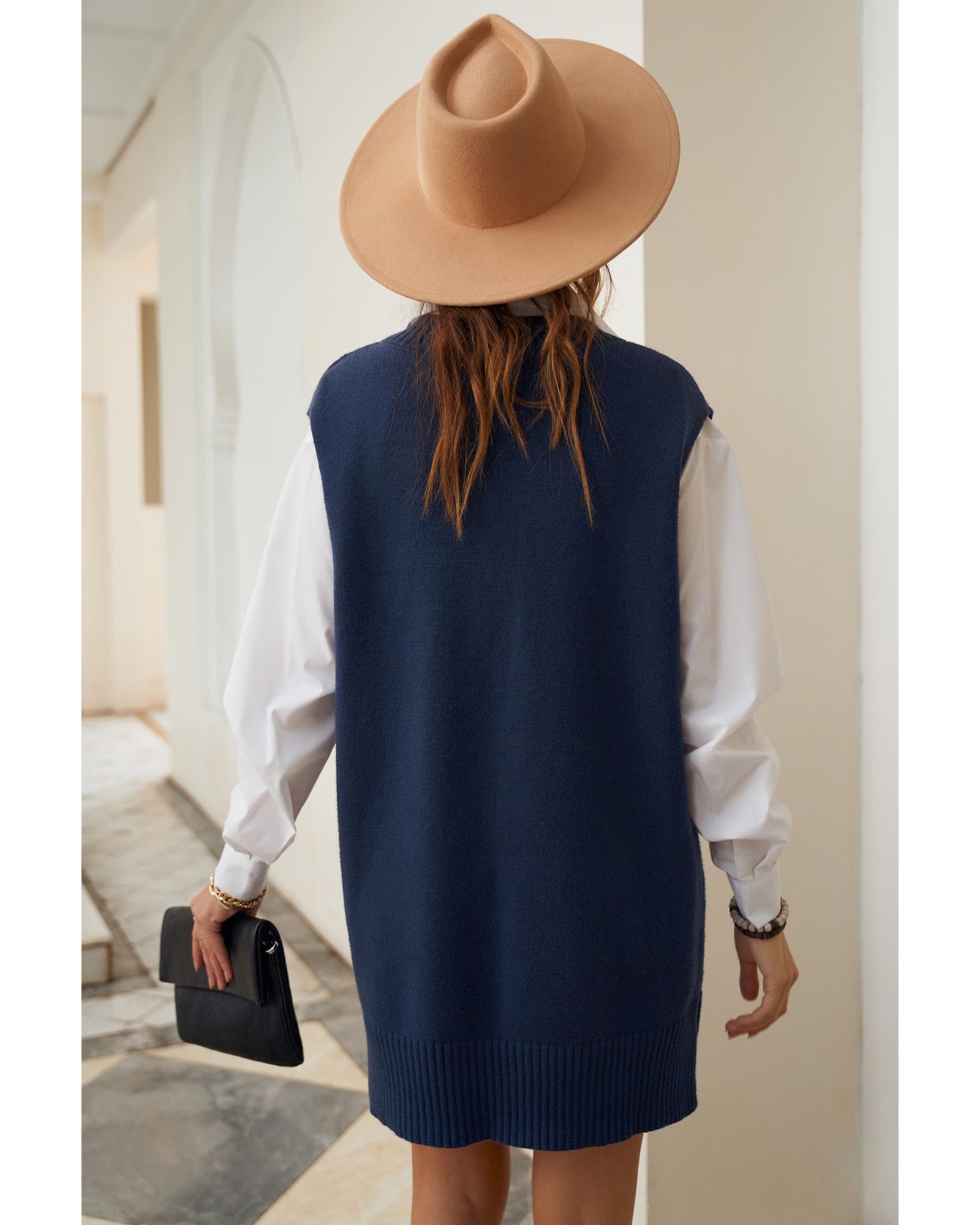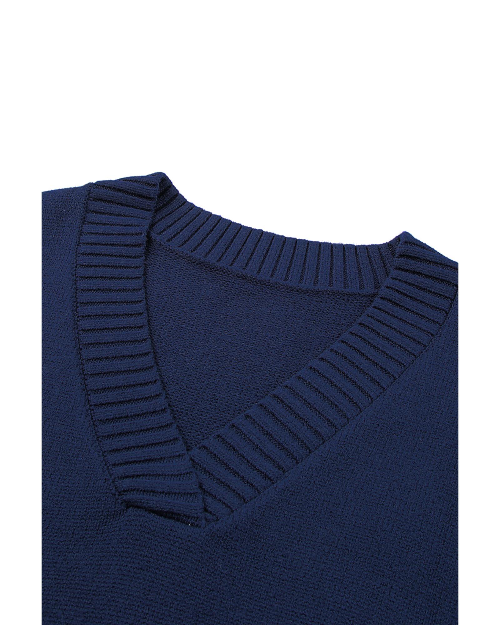 - Stylish and comfortable Dark Blue Knit Vest Pullover Sweater