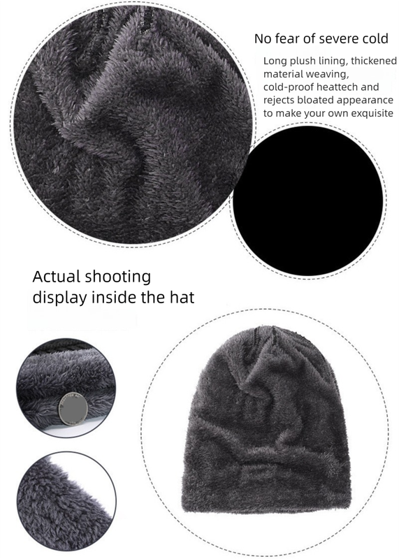 - Plush Fleece Lining (Hat & Neck Warmer): Both the beanie and neck warmer feature an incredibly soft and thick plush fleece lining, providing exceptional warmth and a comfortable feel against the skin.