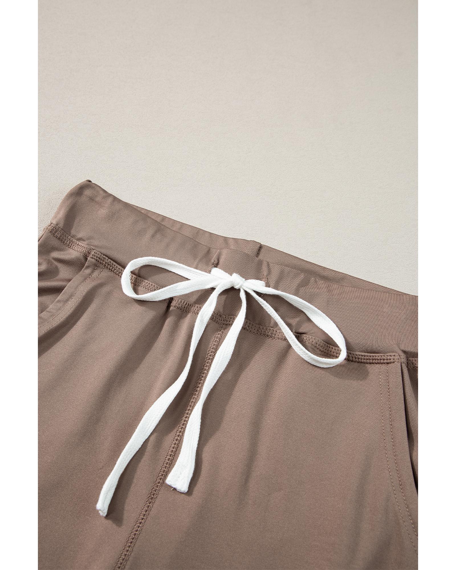 Dark Brown Drawstring Waist Pocketed Joggers – S