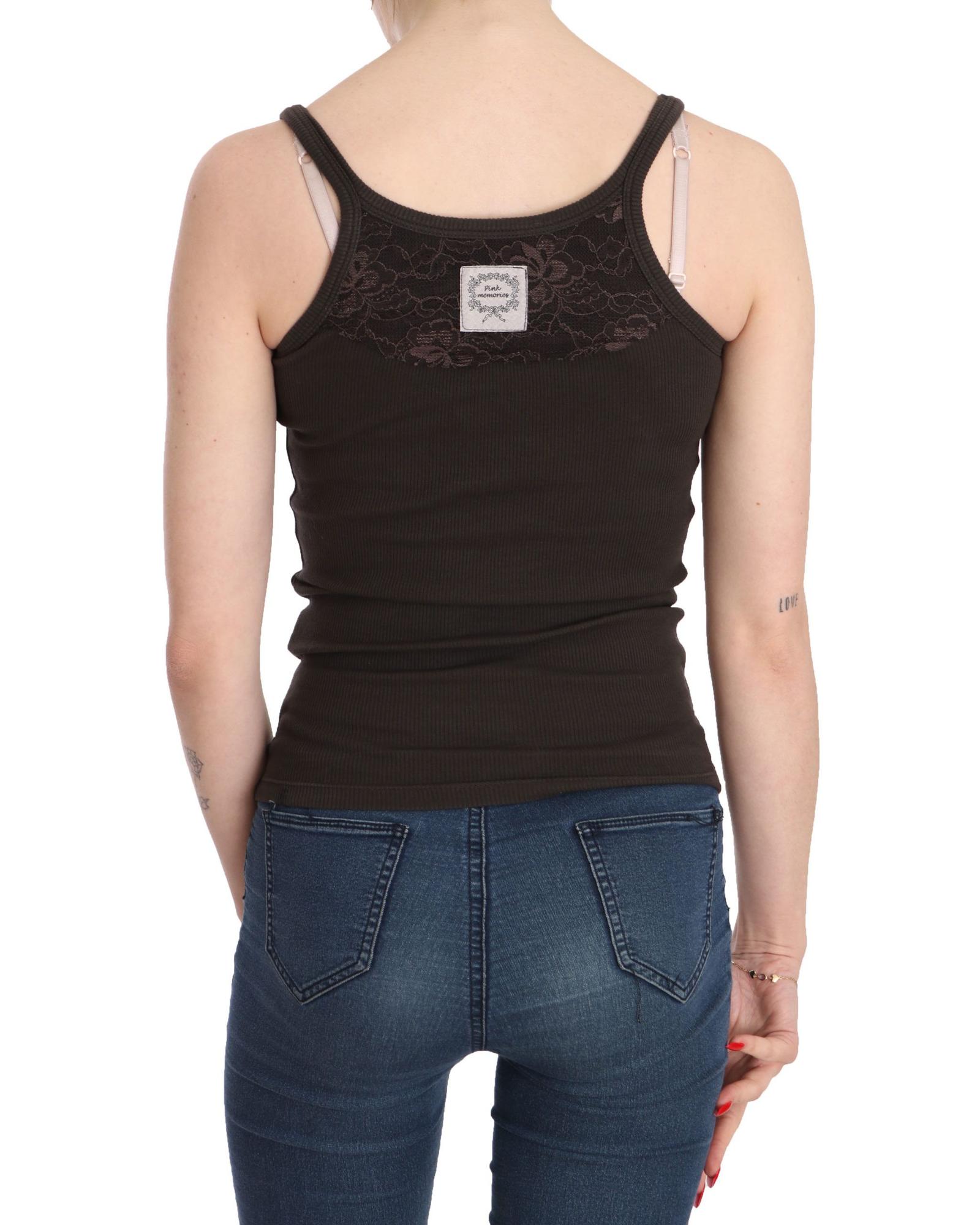 Dark Brown Sleeveless Spaghetti Strap Top Blouse 42 IT Women