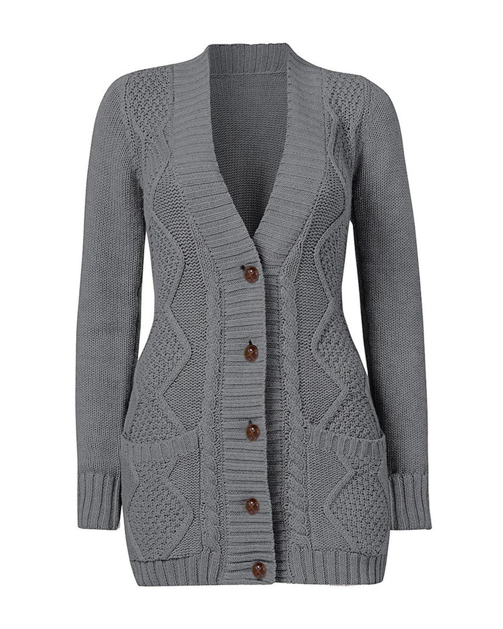 Dark Gray Front Pocket and Buttons Closure Cardigan – S