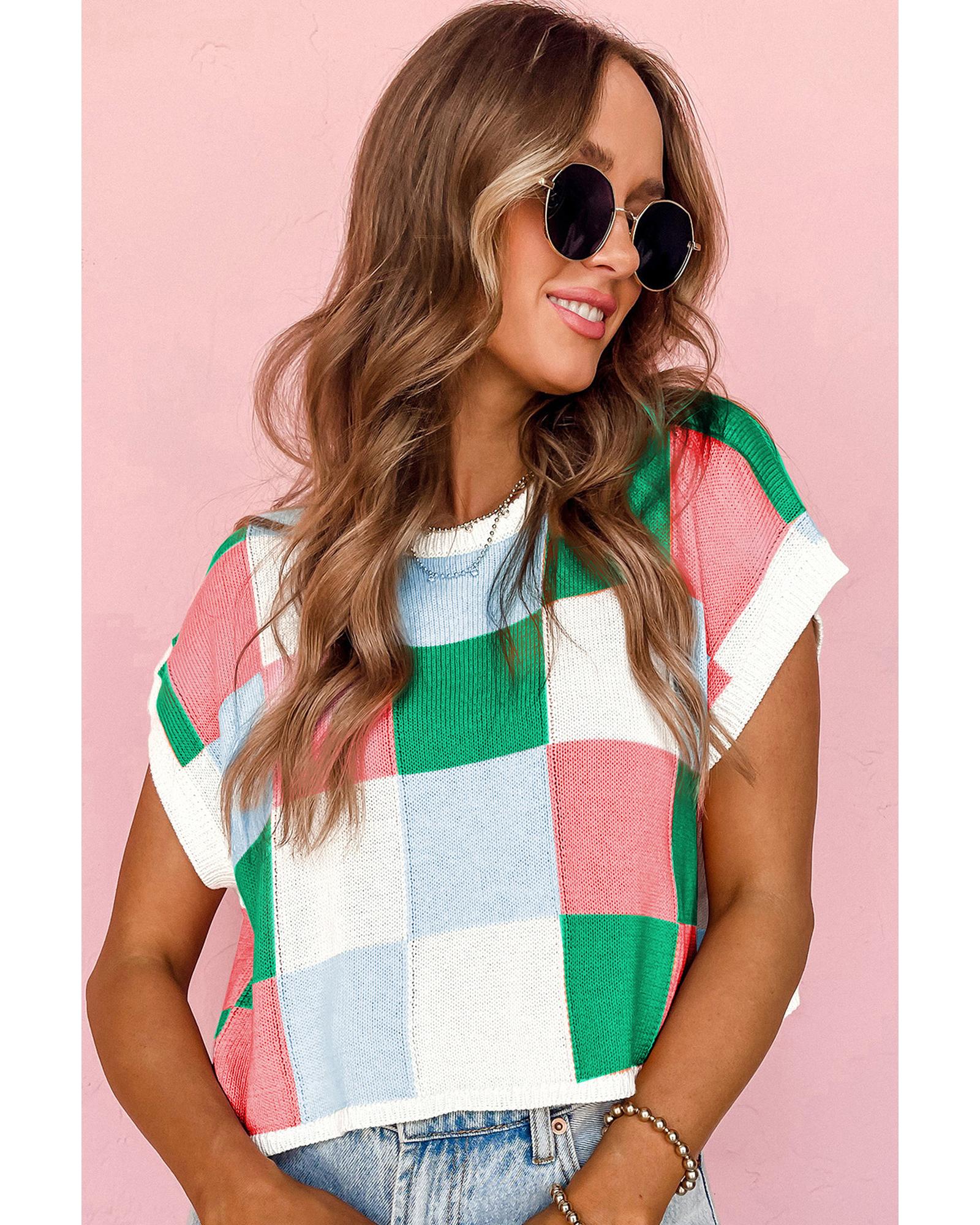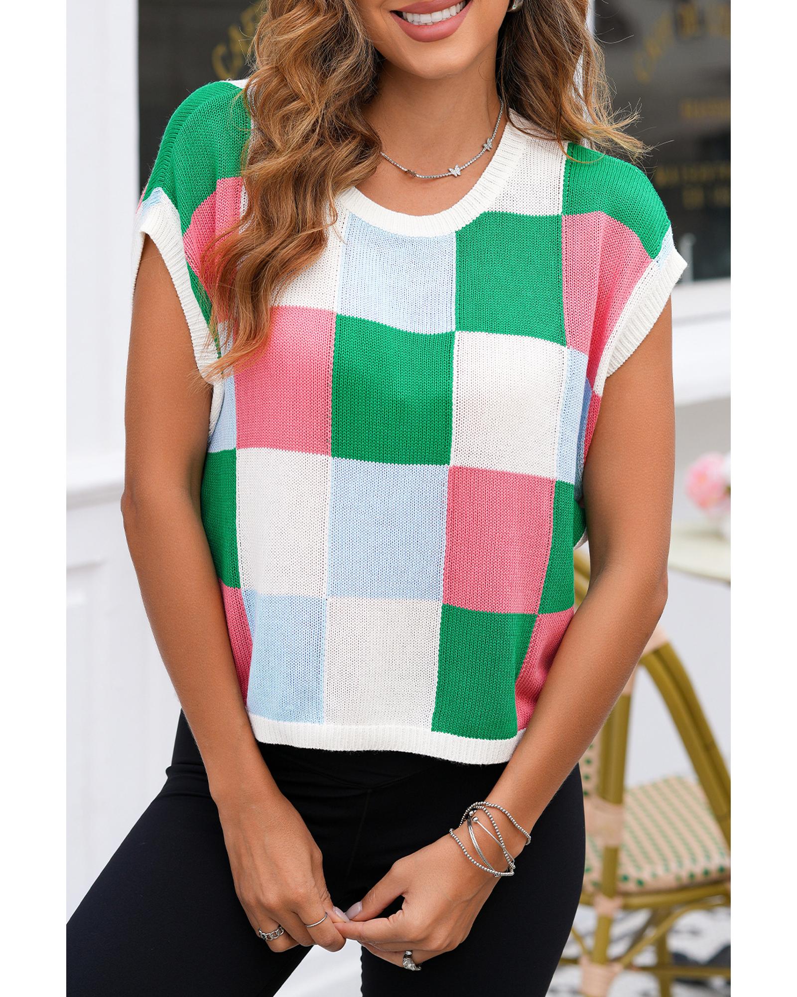 Dark Green Color Block Cap Sleeve Sweater – 2XL