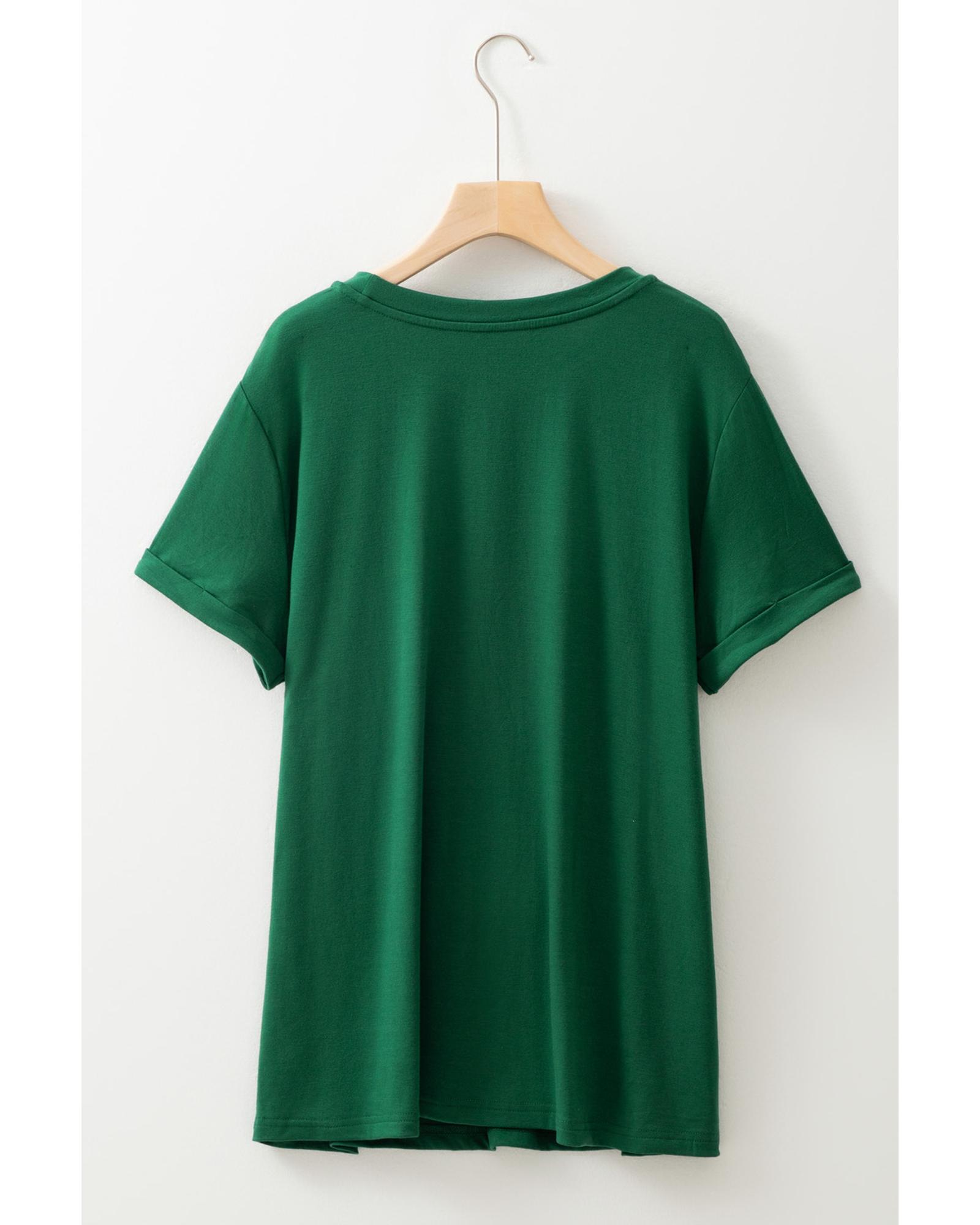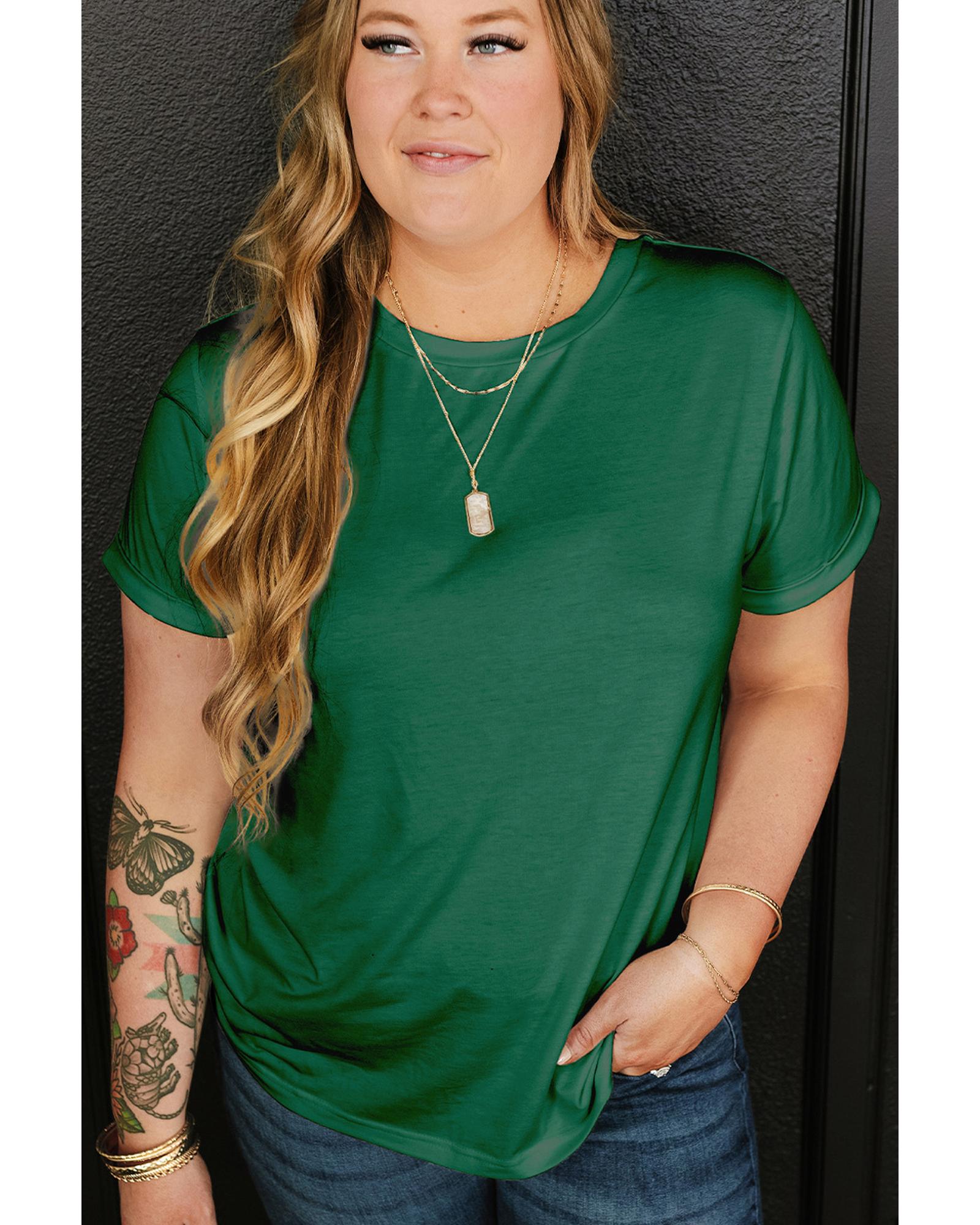 Dark Green Round Neck Rolled Sleeve Plus Size T-shirt – 3X