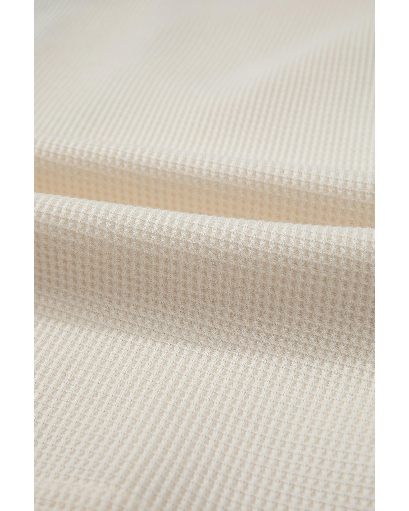 White Quilted Texture Sporty Collared Long Sleeve Top - M