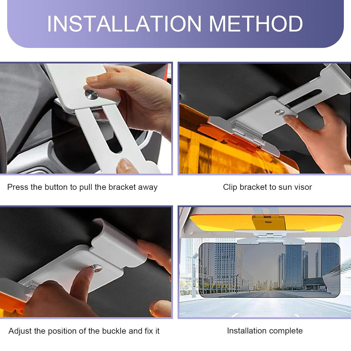 Improve driving comfort with this dual-lens sun visor mirror designed for both daytime glare and nighttime headlight protection. Featuring amber and yellow acrylic lenses, it effectively reduces sunlight and high-beam glare. The press-button extension allows quick adjustment to fit a range of visor sizes. Scratch-resistant materials ensure long-term clarity and strength, making it ideal for extended drives.
