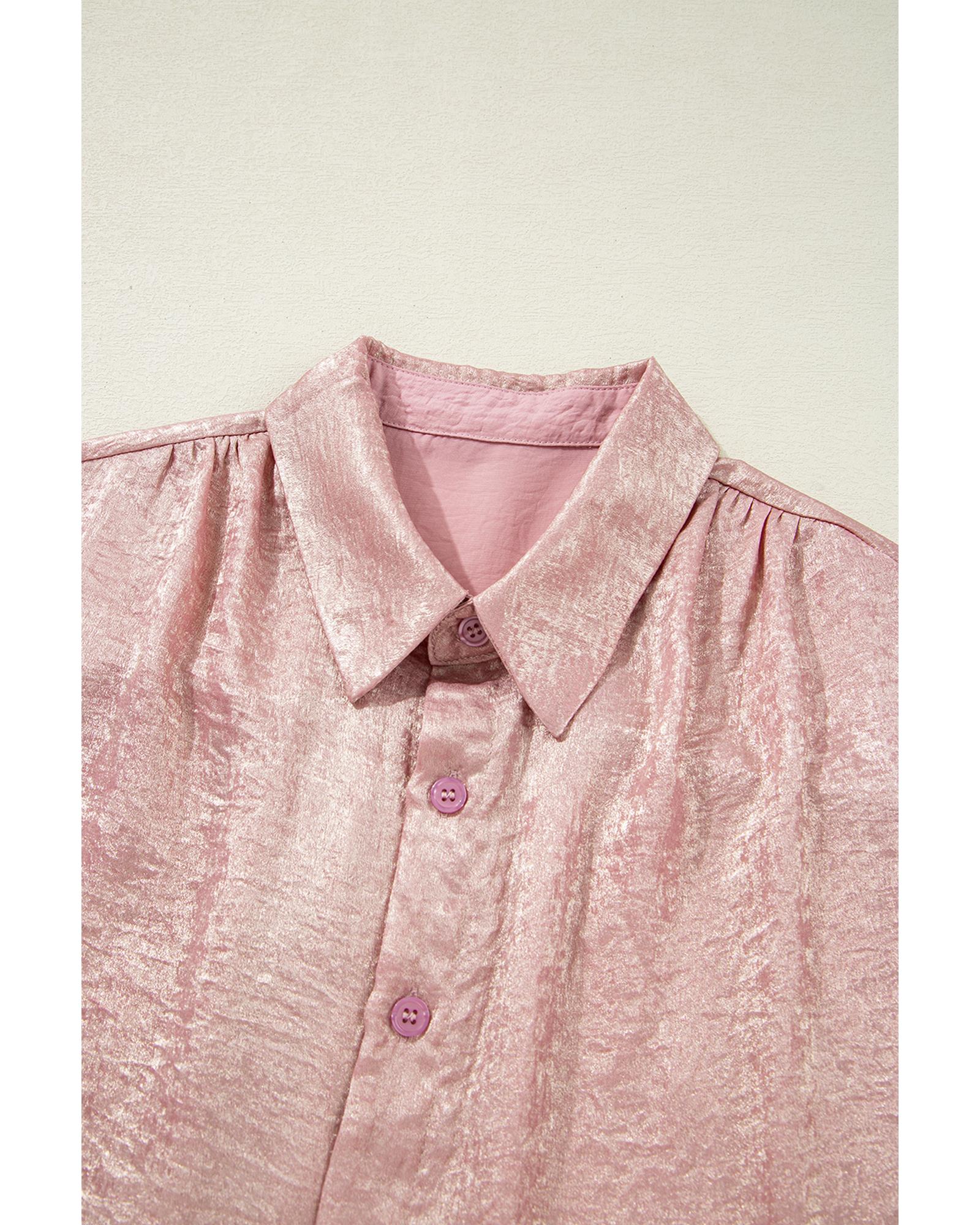 Delicacy Metallic Buttoned Loose Fit Short Sleeve Shirt – L