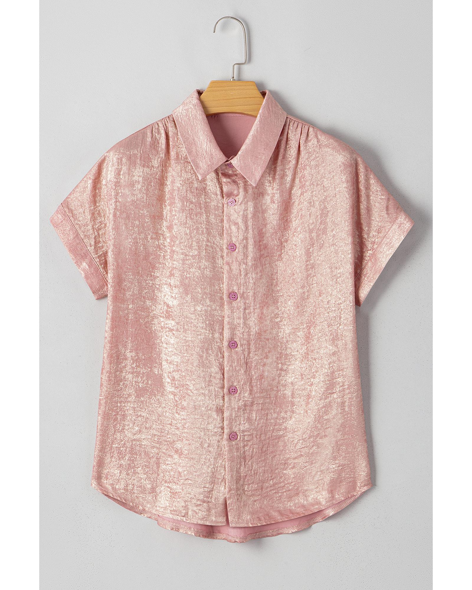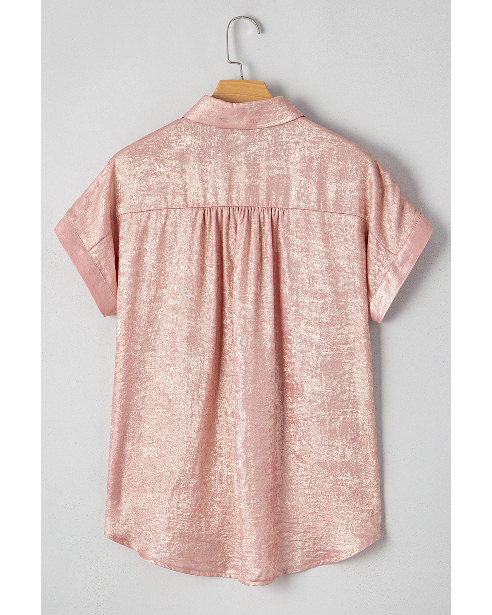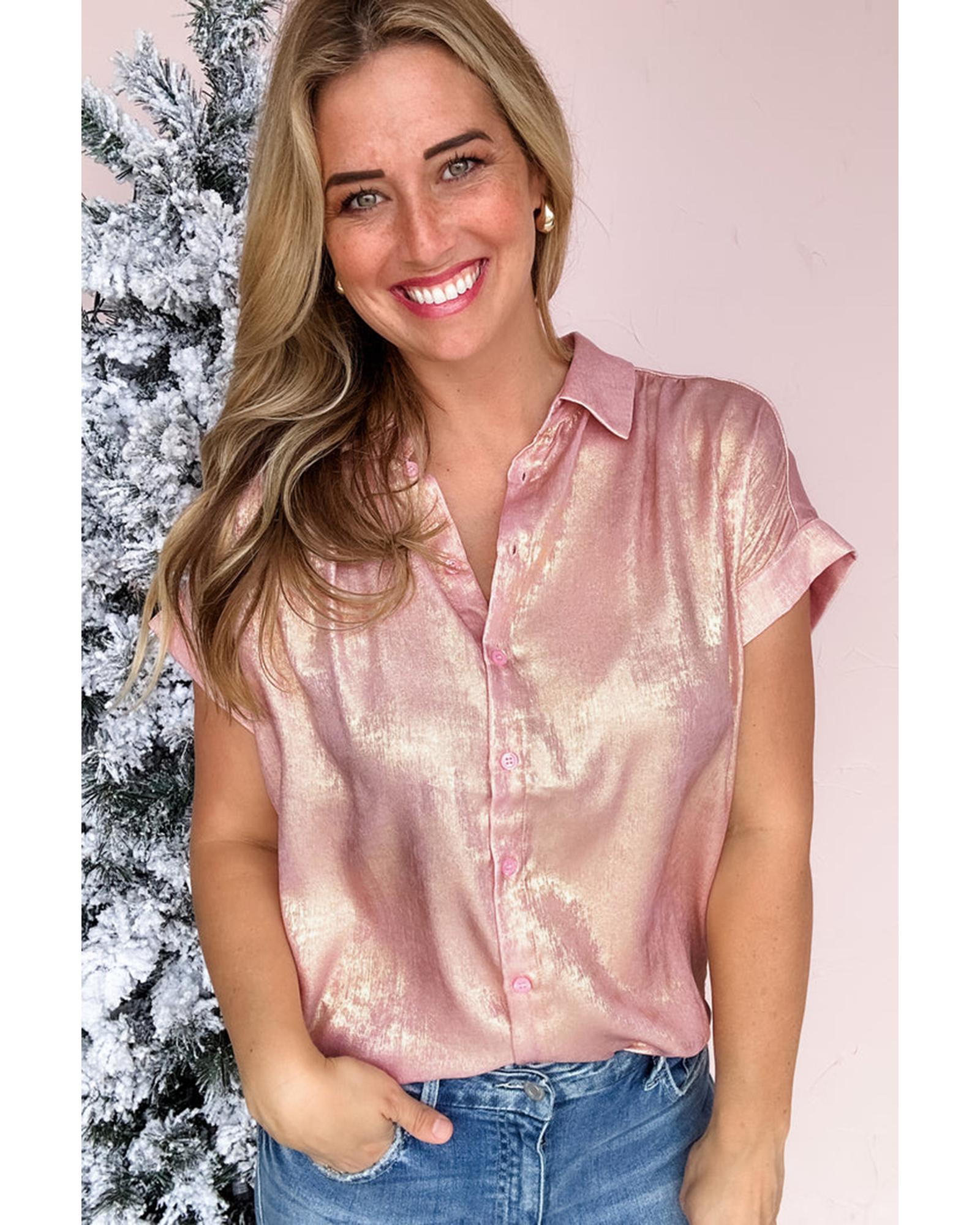 Delicacy Metallic Buttoned Loose Fit Short Sleeve Shirt – S
