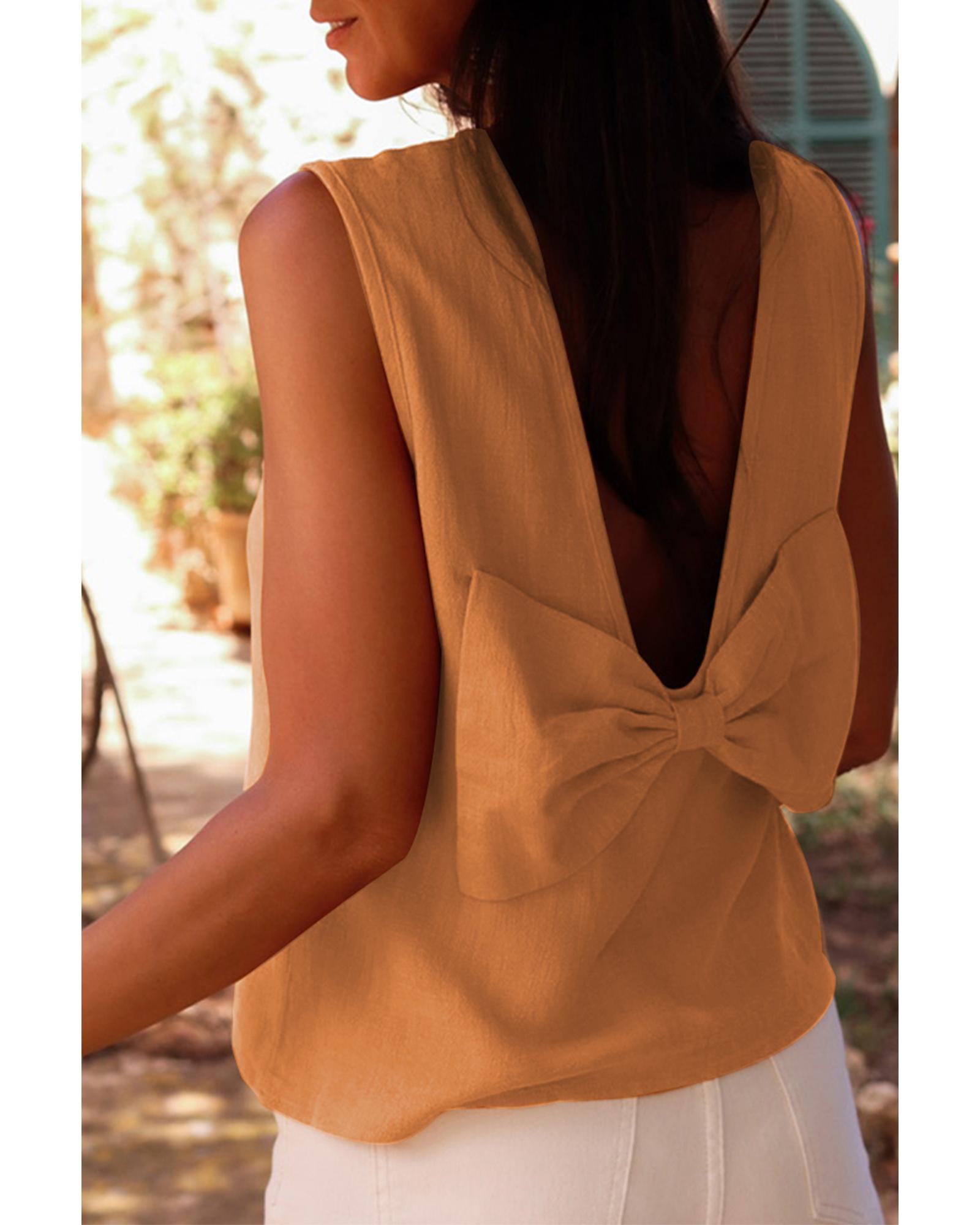 Desert Gold Bowknot V Cut Backless Cotton Tank Top – XL