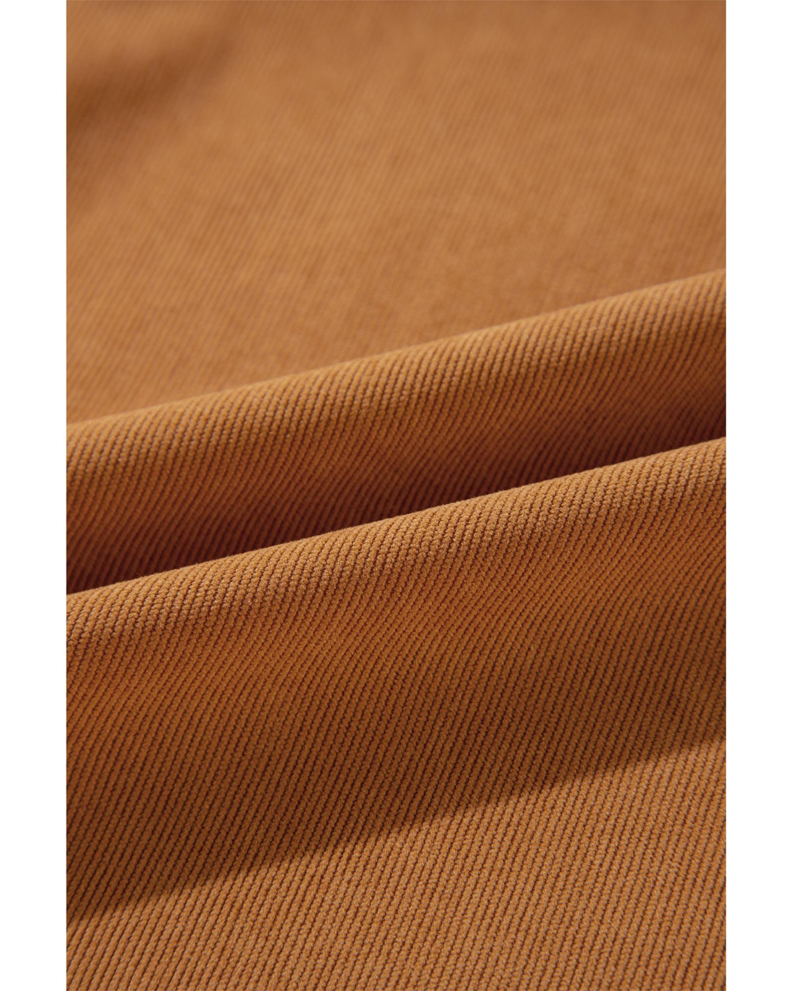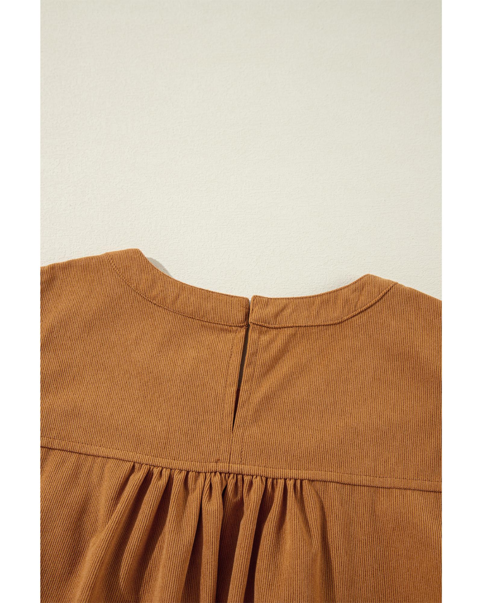 • Luxurious and elegant Desert Gold Corduroy Pleated Puff Sleeve Shift Short Dress