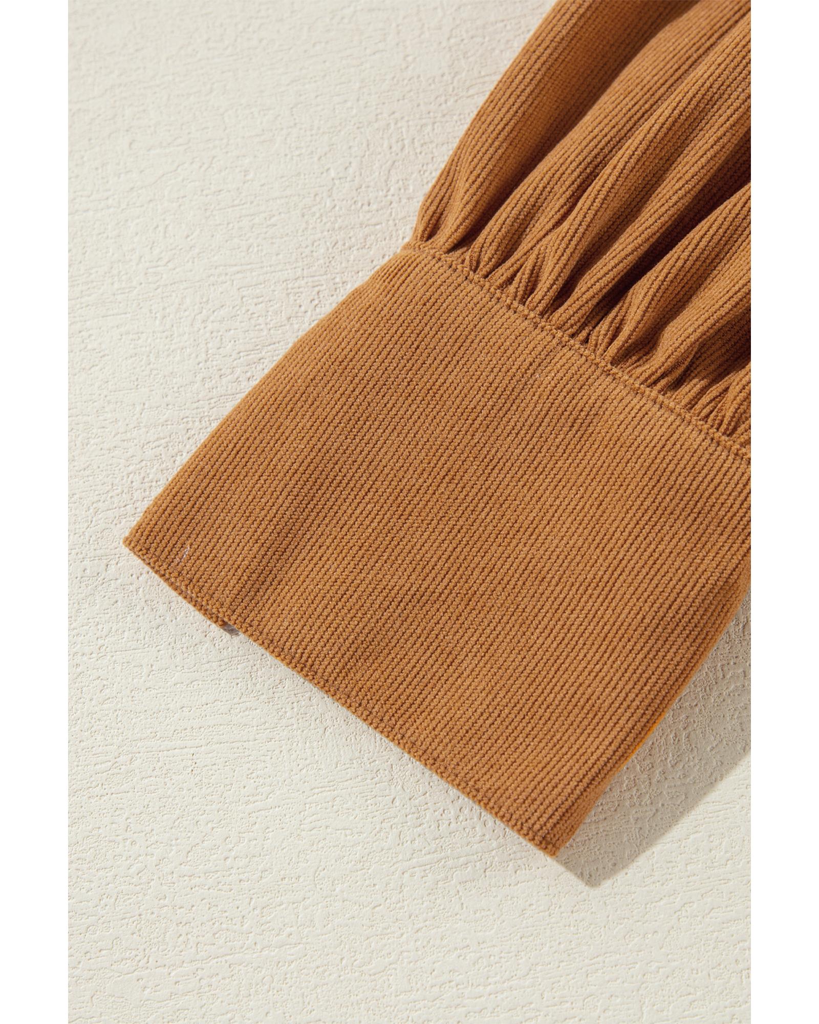 Desert Gold Corduroy Pleated Puff Sleeve Shift Short Dress – XL