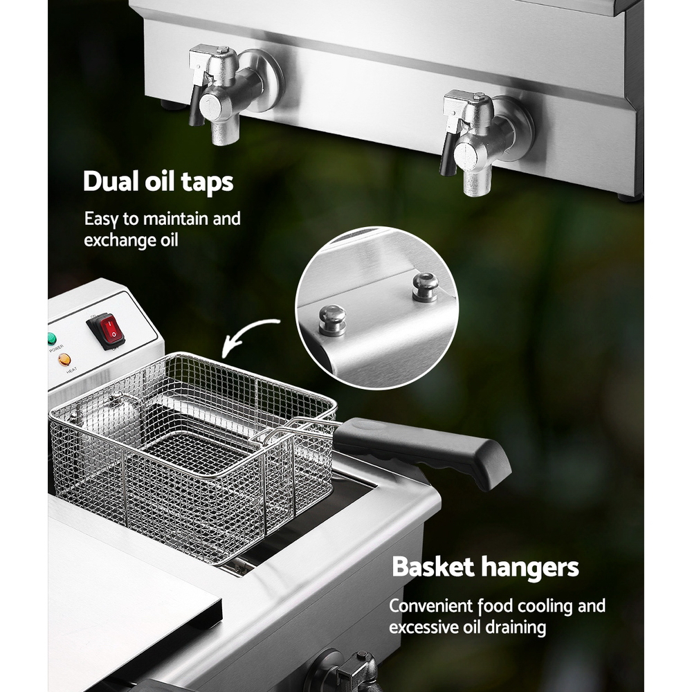 Devanti 20L Electric Commercial Deep Fryer Double Baskets Oil Taps 6000W