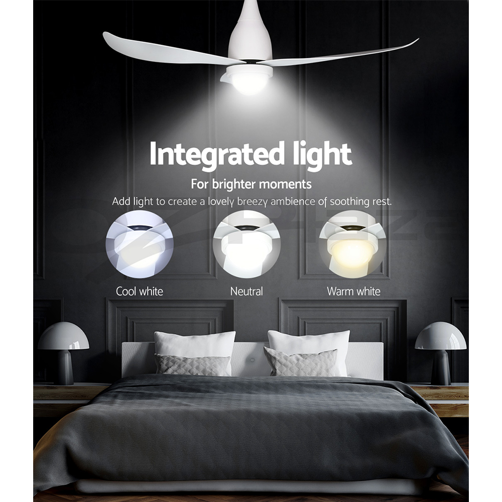 Devanti 52” Ceiling Fan DC Motor LED Light Remote Control – White