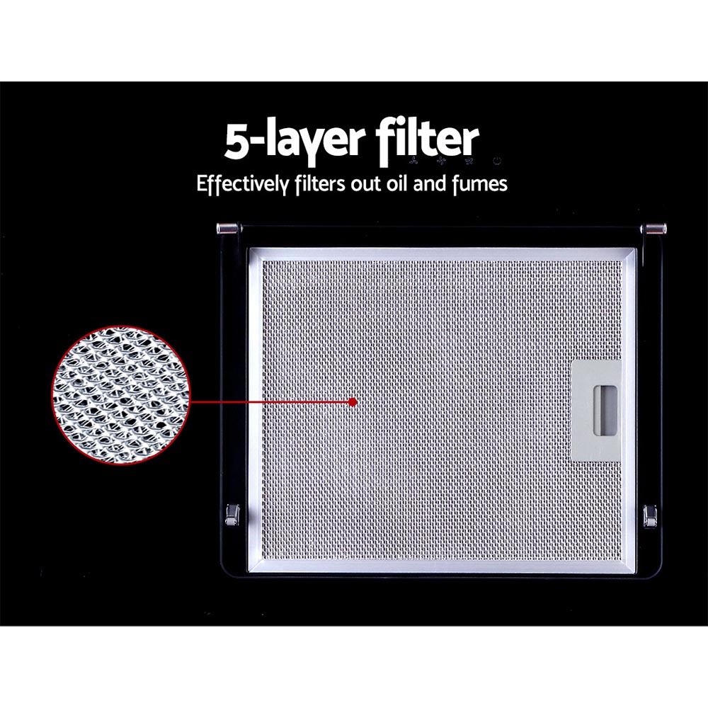 Devanti 900mm Range Hood 90cm Rangehood Glass Black