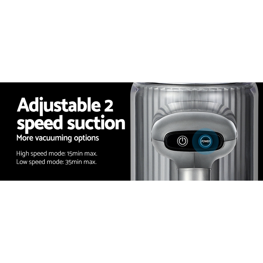 For the ultimate in easy vacuuming, our Devanti Handheld Vacuum Cleaner always makes for efficient cleaning. Its 160pivoting head tilts and swivels, while the long-reach neck can get to those hard-to-reach spaces. It features a soft roller brush that is easy on floors, and hard on dirt. Run continuously for 15-35 minutes at a powerful 120W with 12,000pa suction power. There are 3 separate heads for cleaning a floor brush, a sofa brush, and a long crevice brush that gets to those hard-to-reach places. The one-handed design is easy to use, and your purchase includes wall mounting accessories so you can store it easily and out of the way. All collected dirt and debris pass through a washable and reusable HEPA filter that eliminates up to 99.97% of dust and allergens. Finally, the 0.45L dust bin is easily emptied with the click of a button no more messy bags! Join the cleaning revolution and enjoy hassle-free vacuuming with a Devanti Handheld Vacuum Cleaner.
