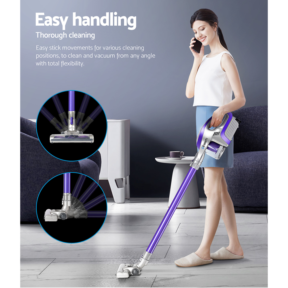 Devanti Stick Vacuum Cleaner Roller Brush Cordless 150W Purple