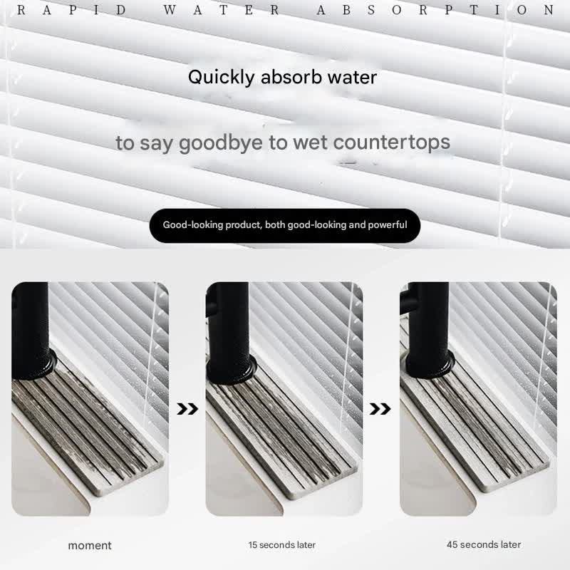 • Quick Drying: Water evaporates quickly, typically within 60 seconds, keeping the countertop dry and preventing mildew.