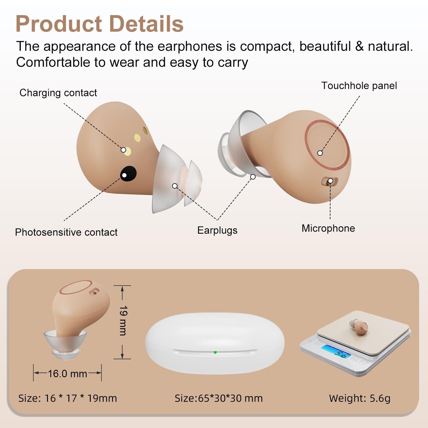 • 1 x Digital In Ear Tws Hearing Aid Rechargeable Invisible