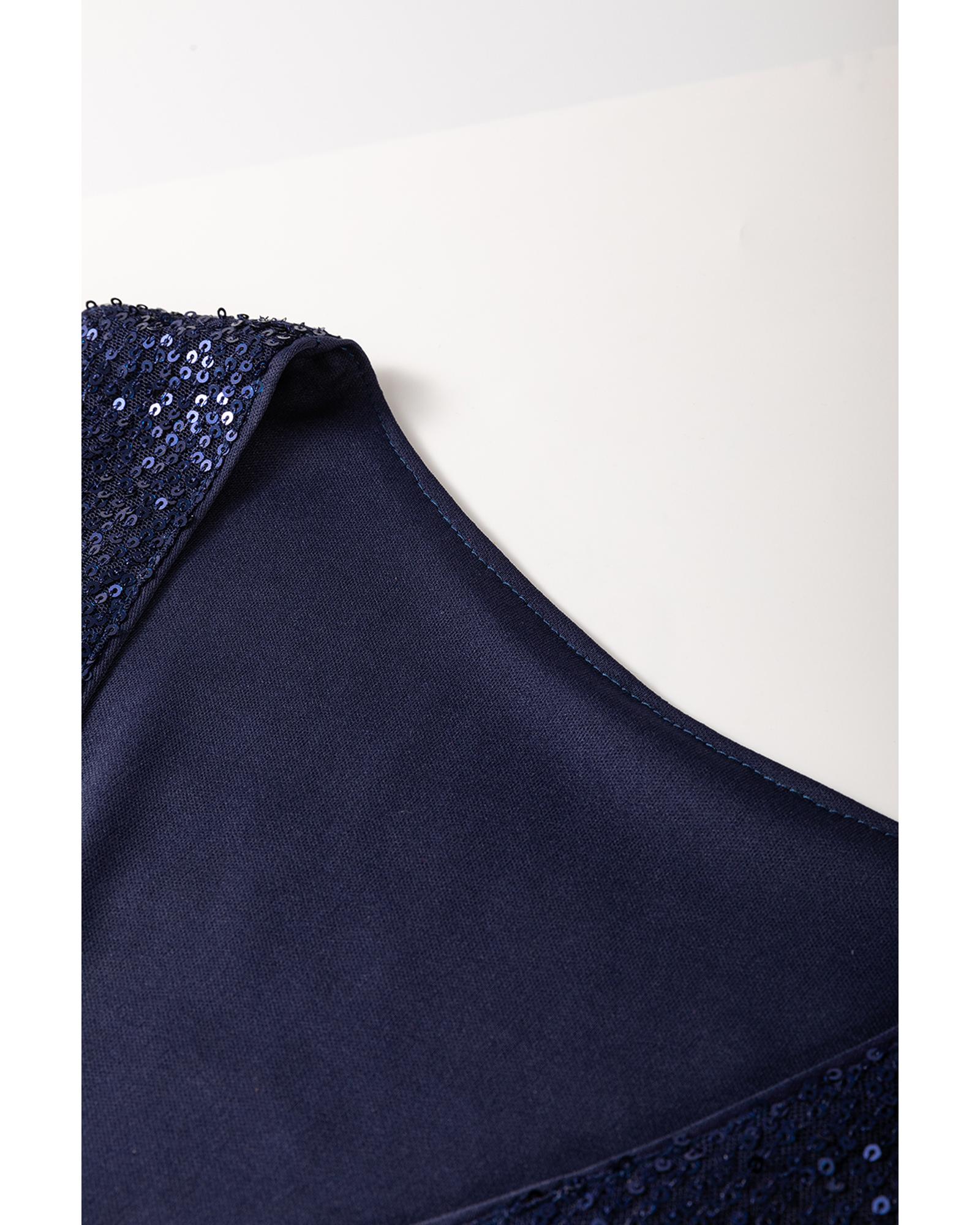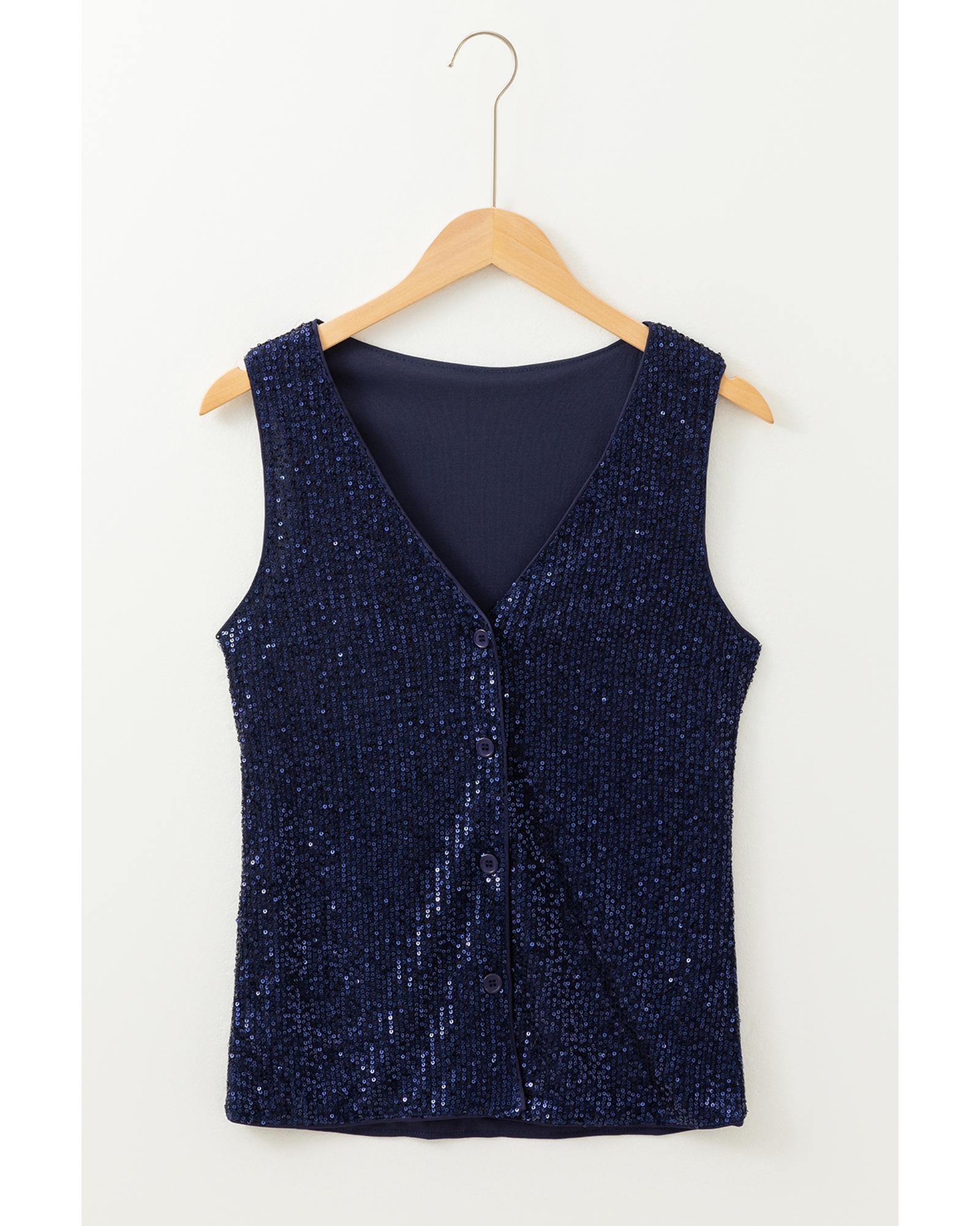 Dirty blue Sequined Deep V Neck Buttoned Tank Top – S