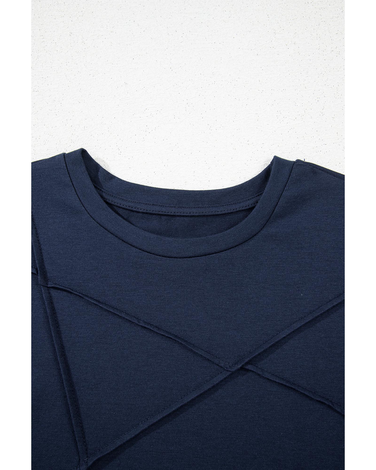 Light Blue Corded Colorblock Drop Shoulder Loose Top - M