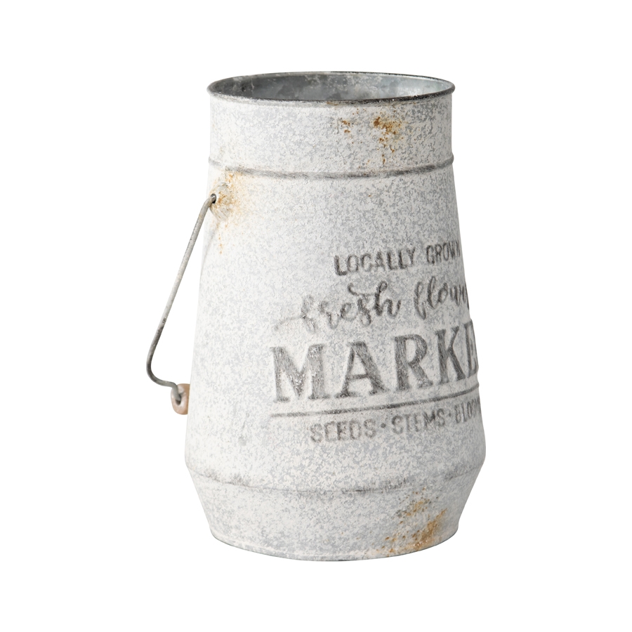 Distressed Flower Market Planter w Handle 26cm