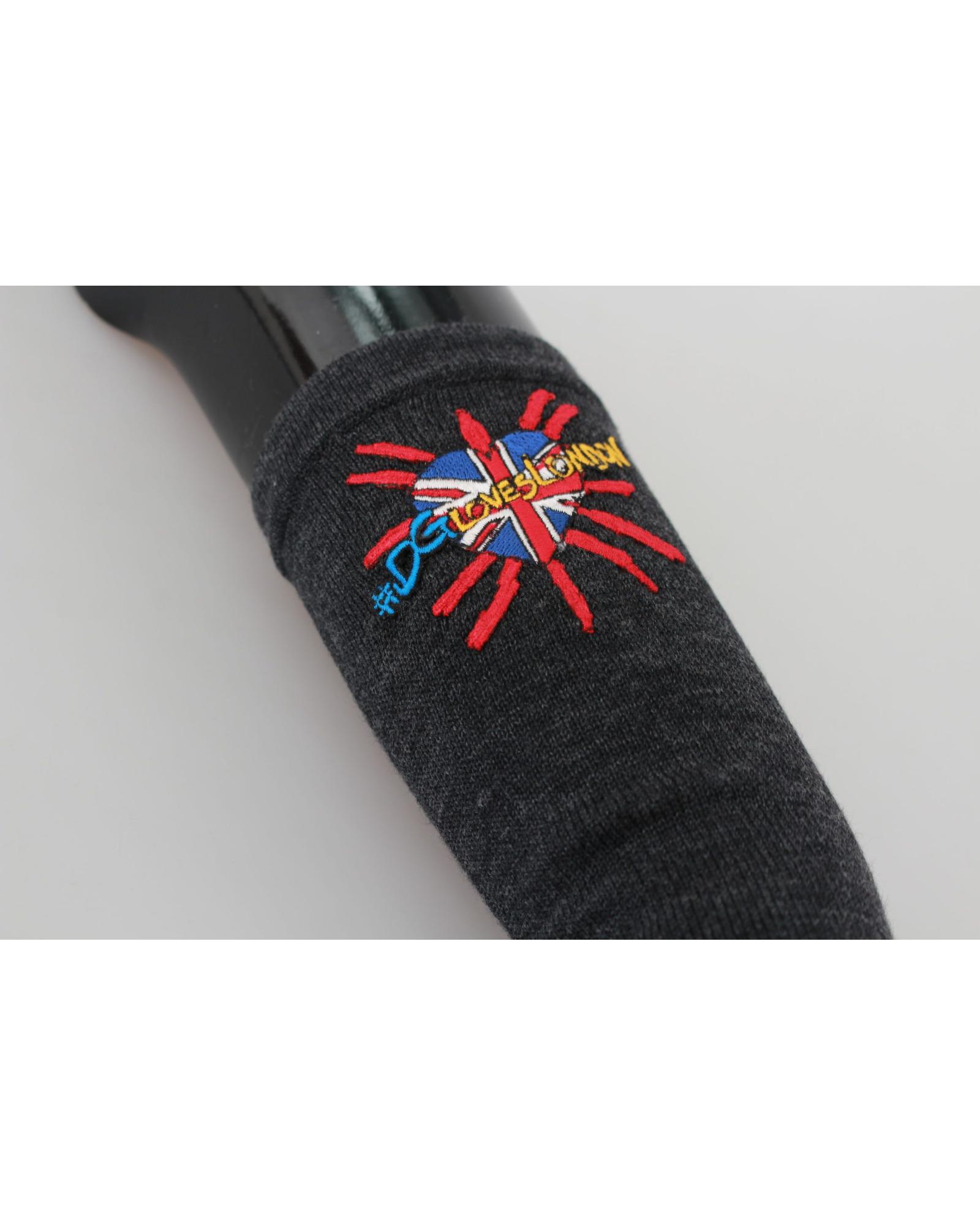Dolce & Gabbana Gray Elbow Length Embroidered Virgin Wool Gloves One Size Women