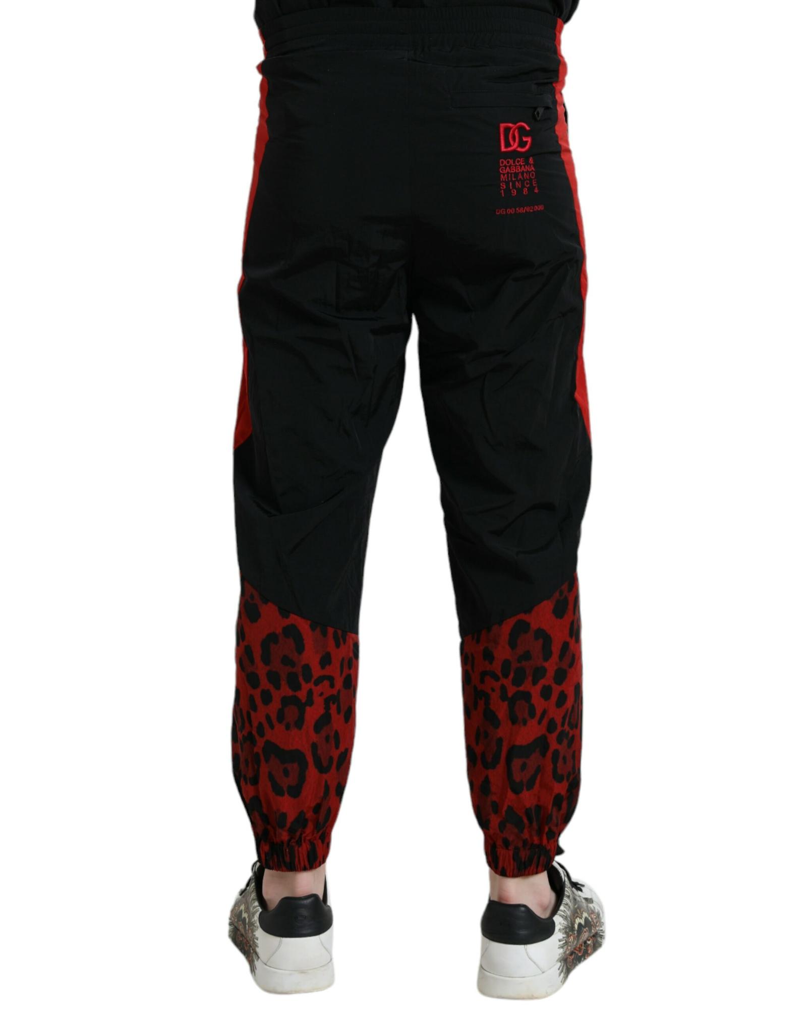 Dolce & Gabbana Men's Black Red Leopard Print Nylon Jogger Pants - 50 IT