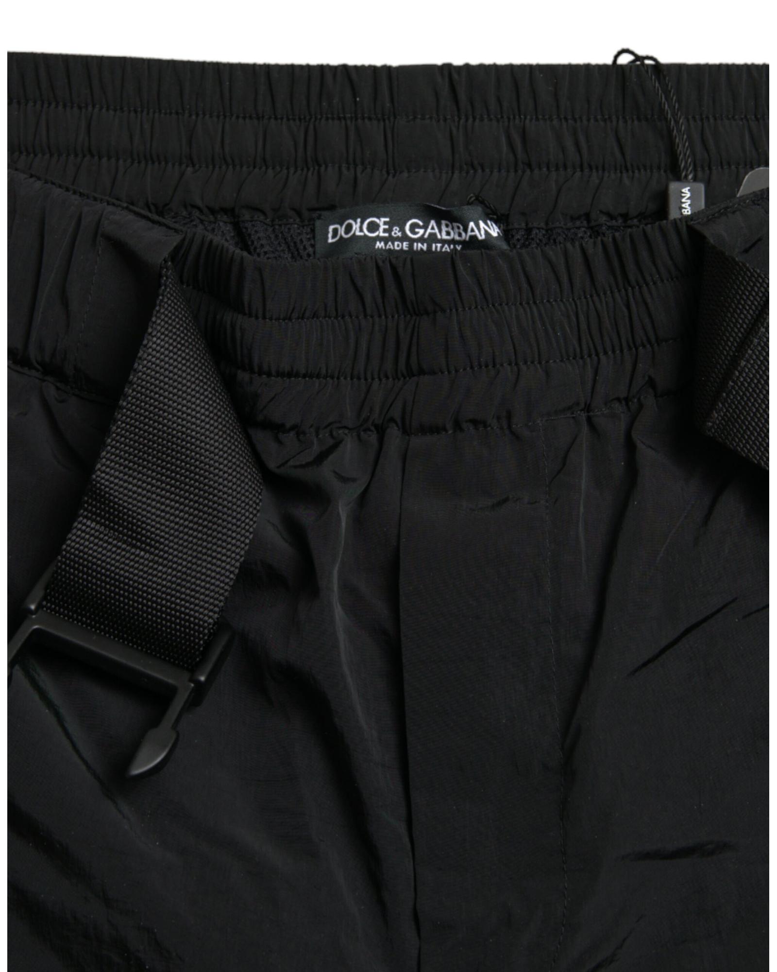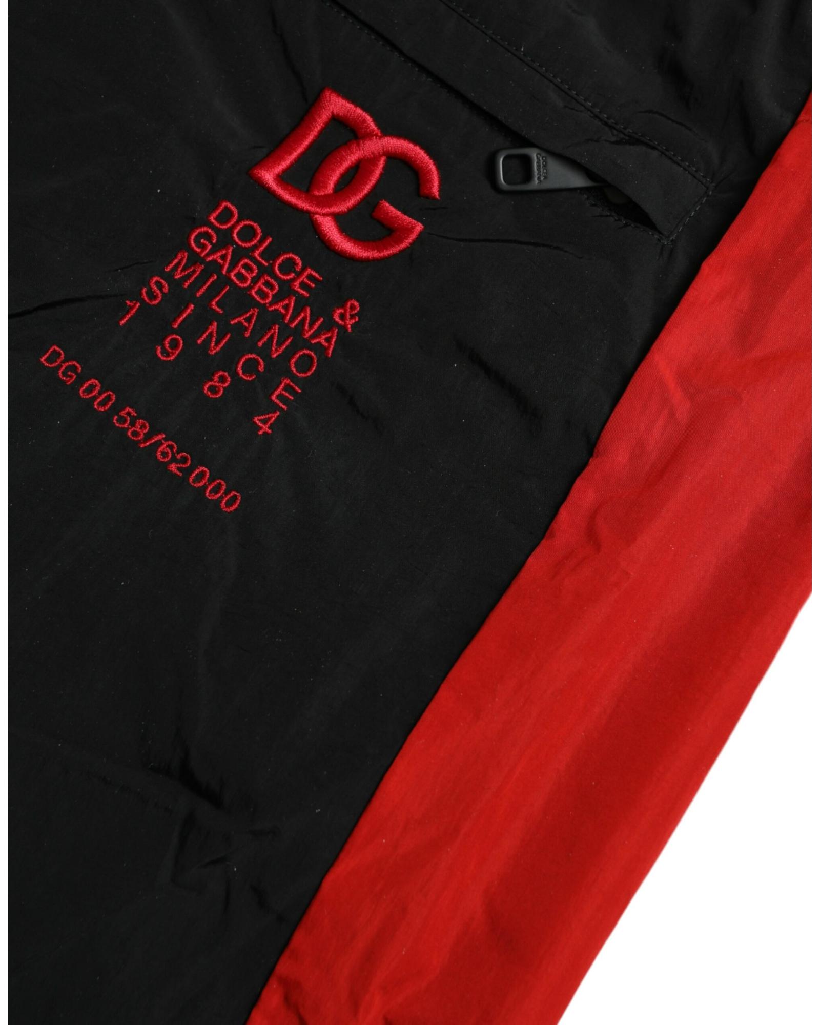 Dolce & Gabbana Men’s Black Red Leopard Print Nylon Jogger Pants – 48 IT