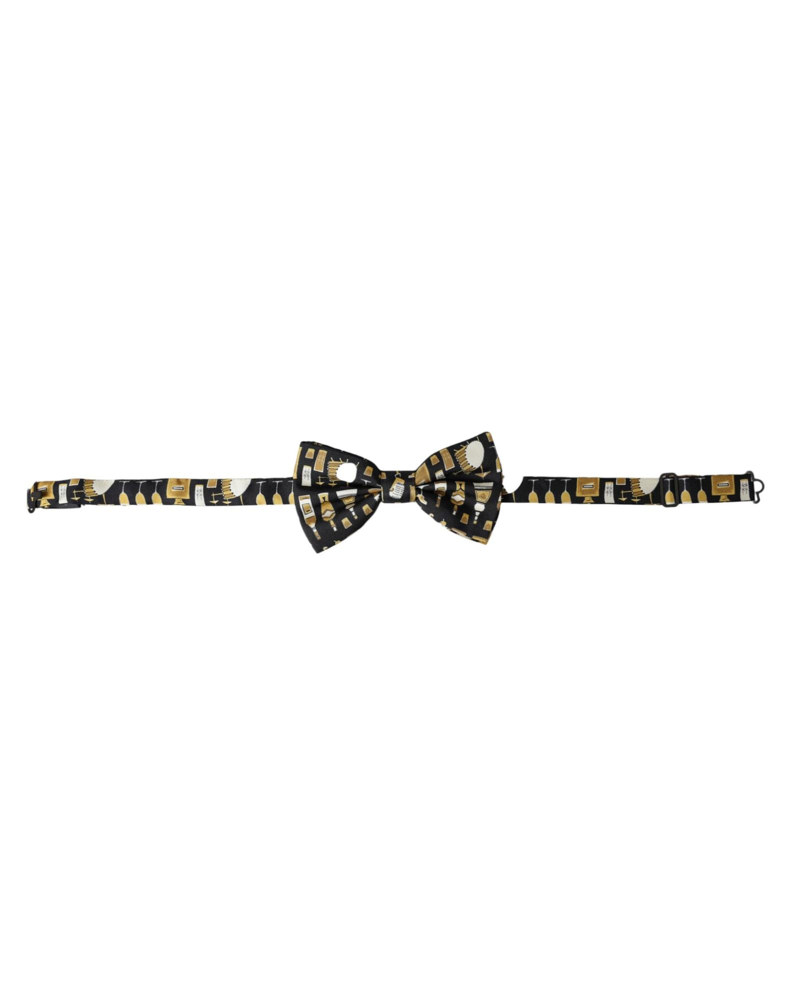 Dolce & Gabbana Men’s Black Silk Cocktail Adjustable Neck Bow Tie – One Size