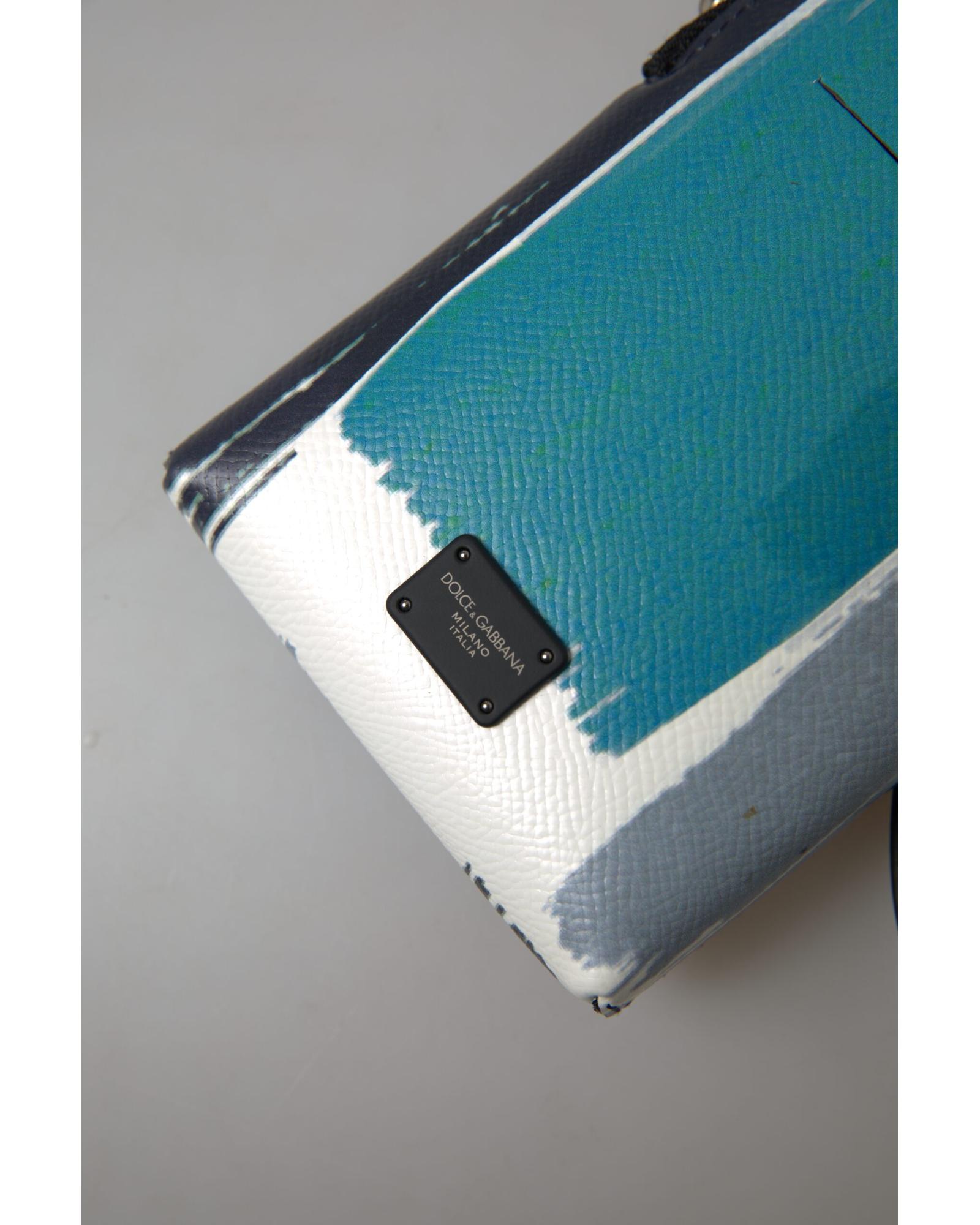 Dolce & Gabbana Men’s Blue Leather Purse Crossbody Sling Phone Bag – One Size