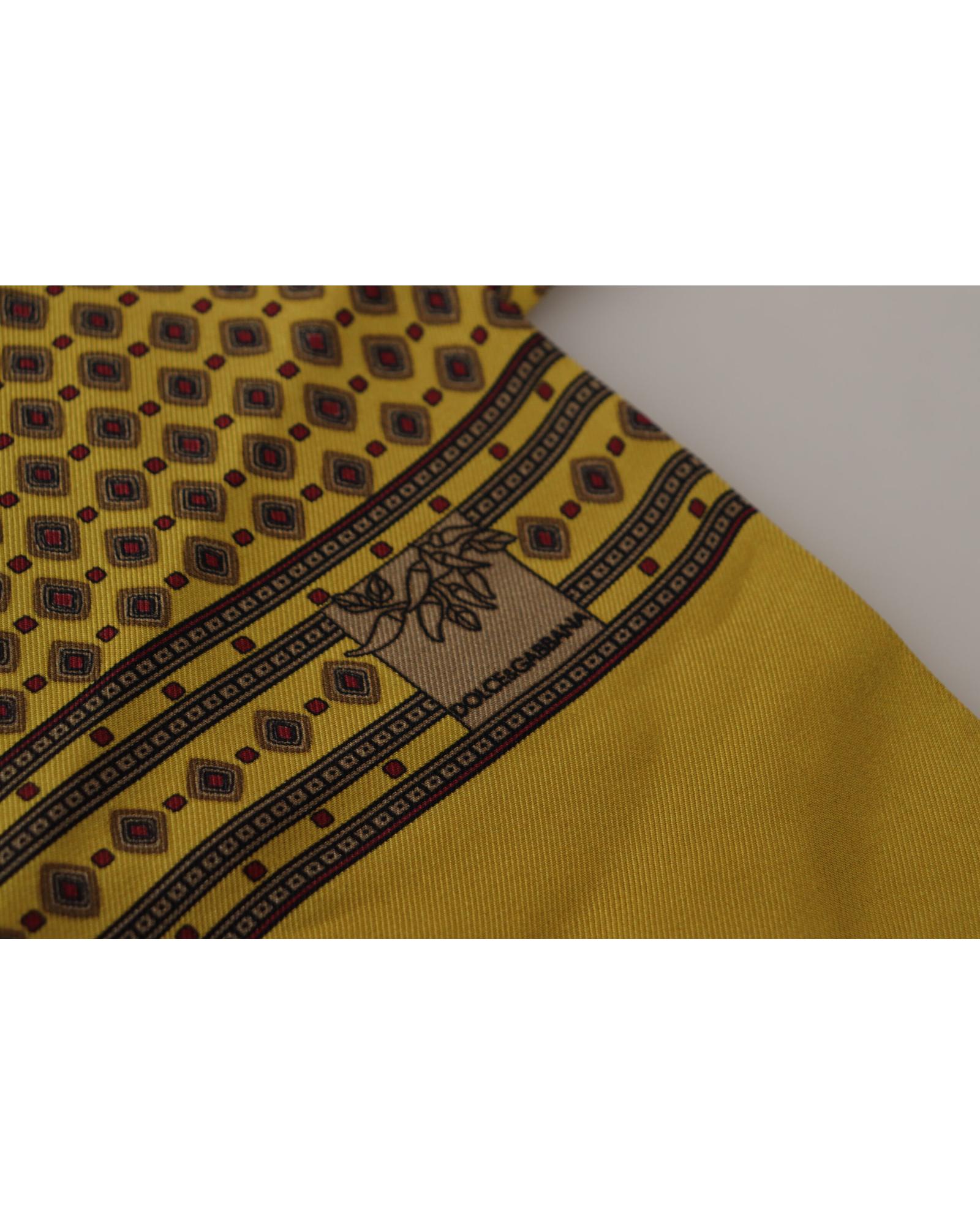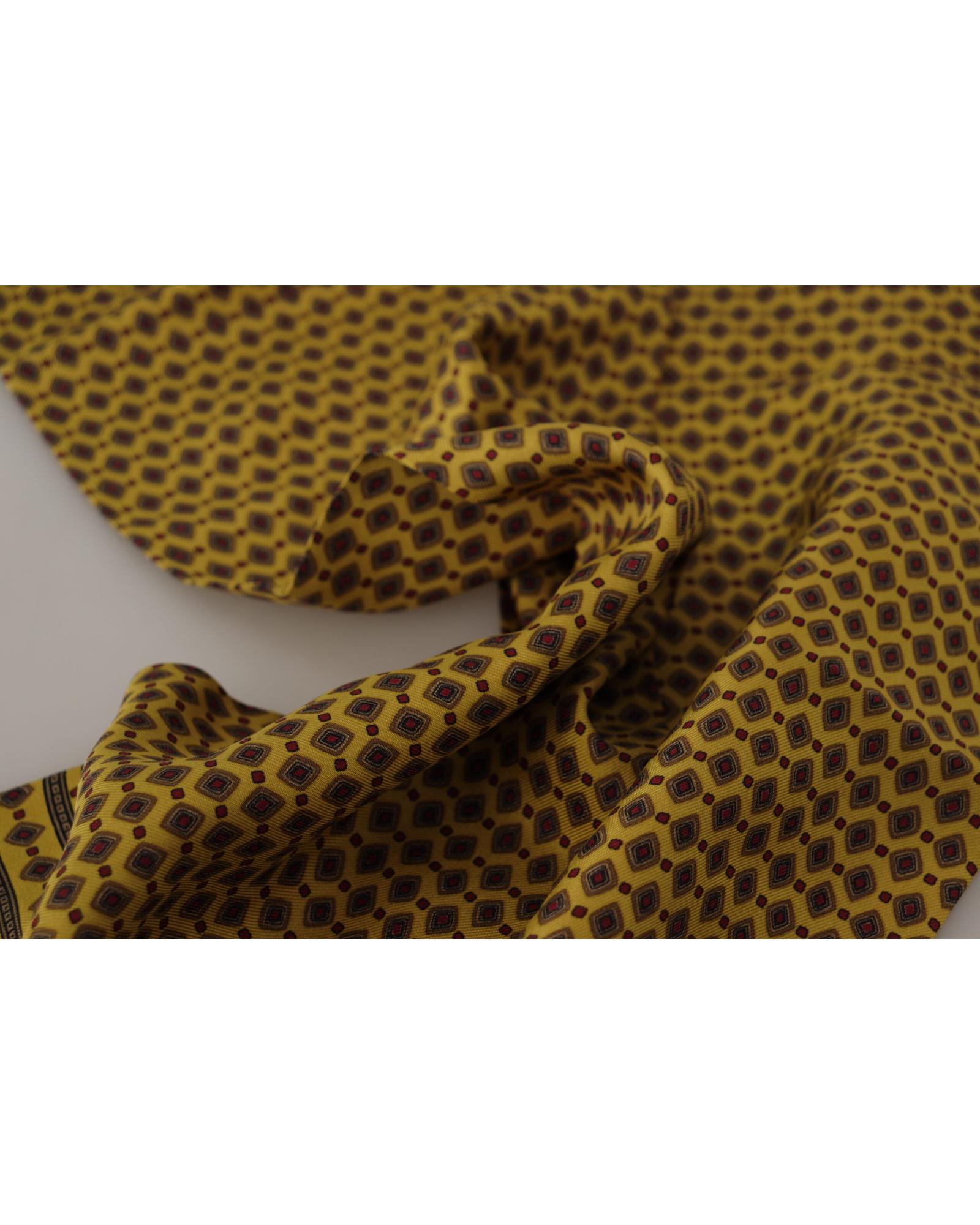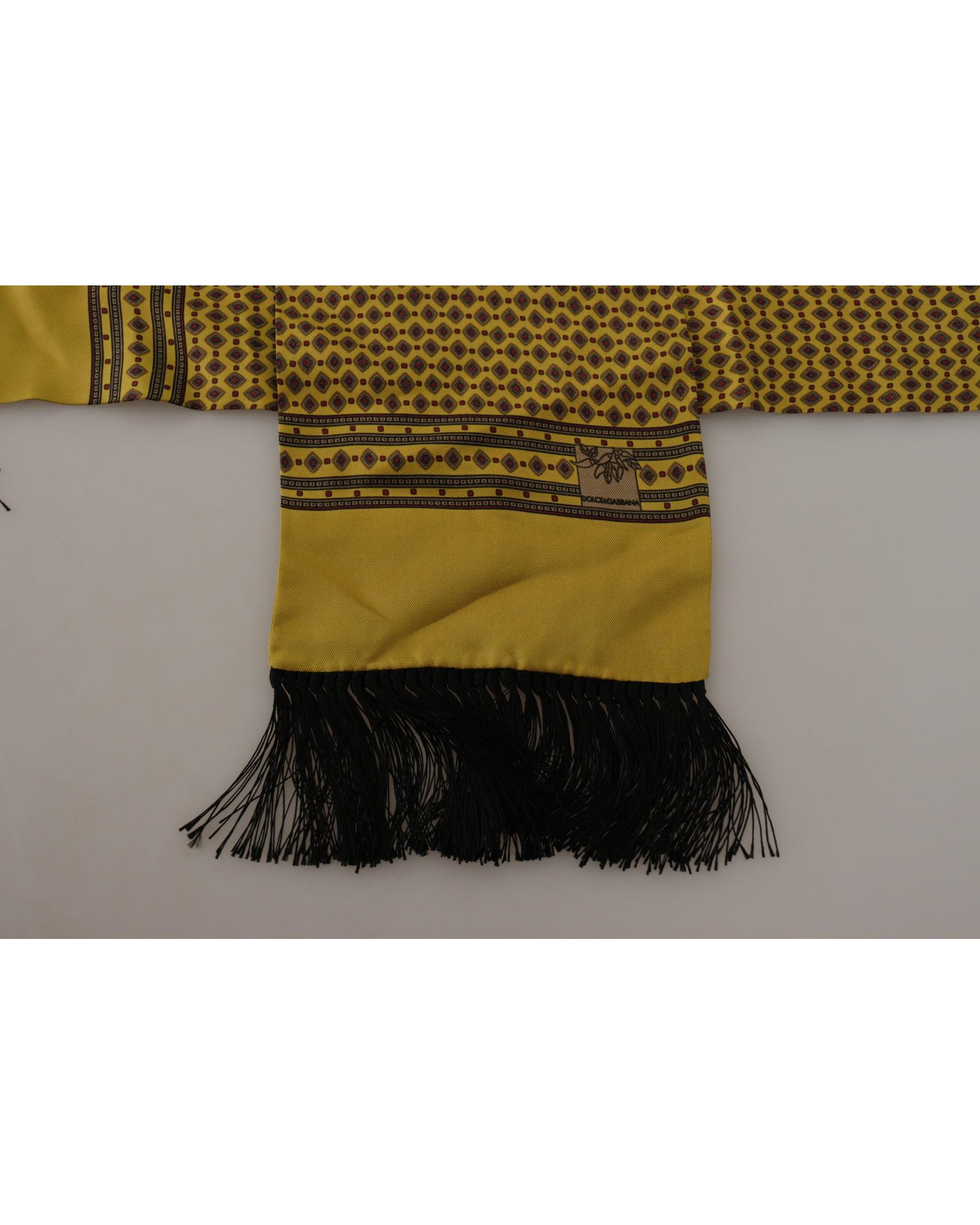 Dolce & Gabbana Men’s Yellow Patterned Silk Neck Wrap Fringe Scarf – One Size