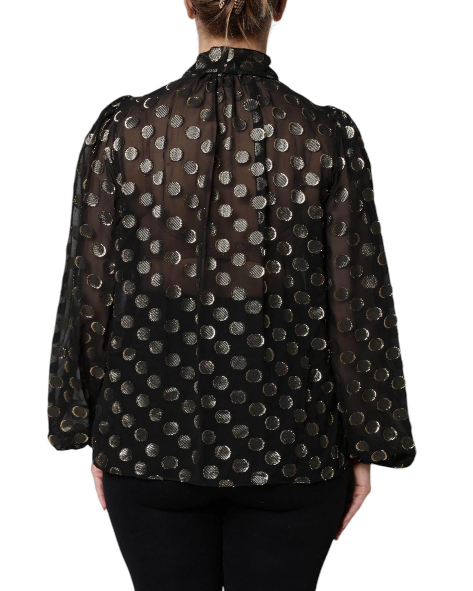 Dolce & Gabbana Women’s Black Sheer Tied Neck Polka Dots Blouse Top – 38 IT