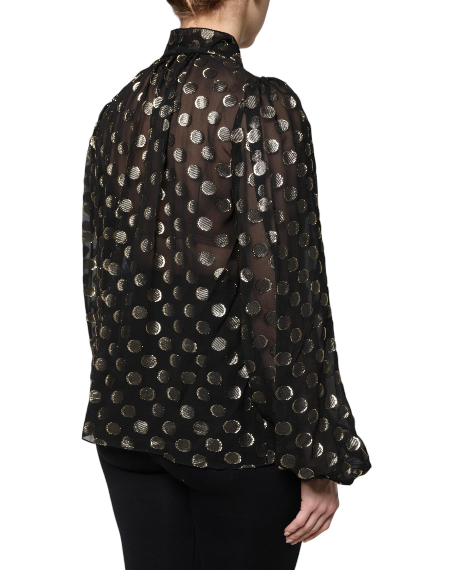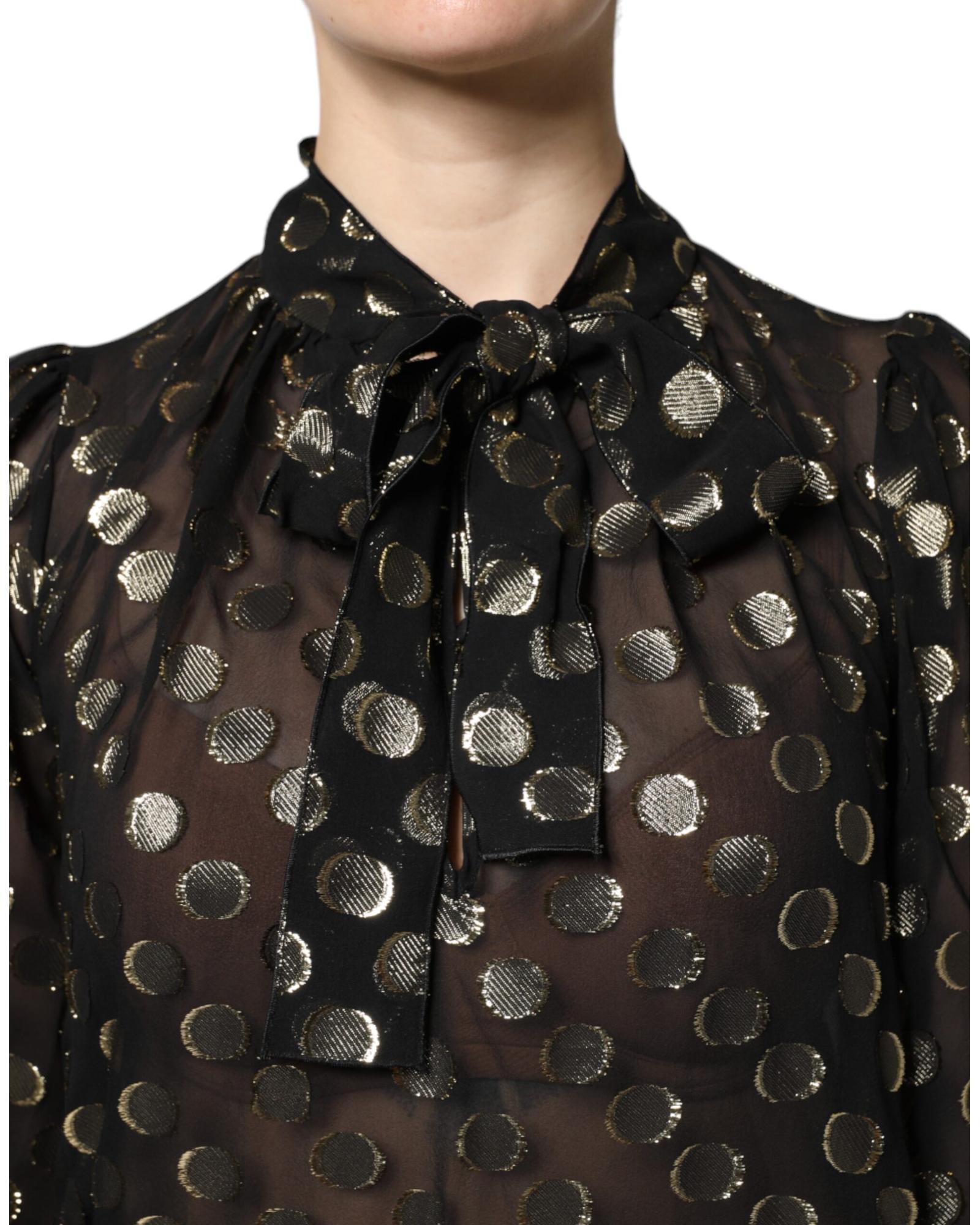 Dolce & Gabbana Women’s Black Sheer Tied Neck Polka Dots Blouse Top – 44 IT