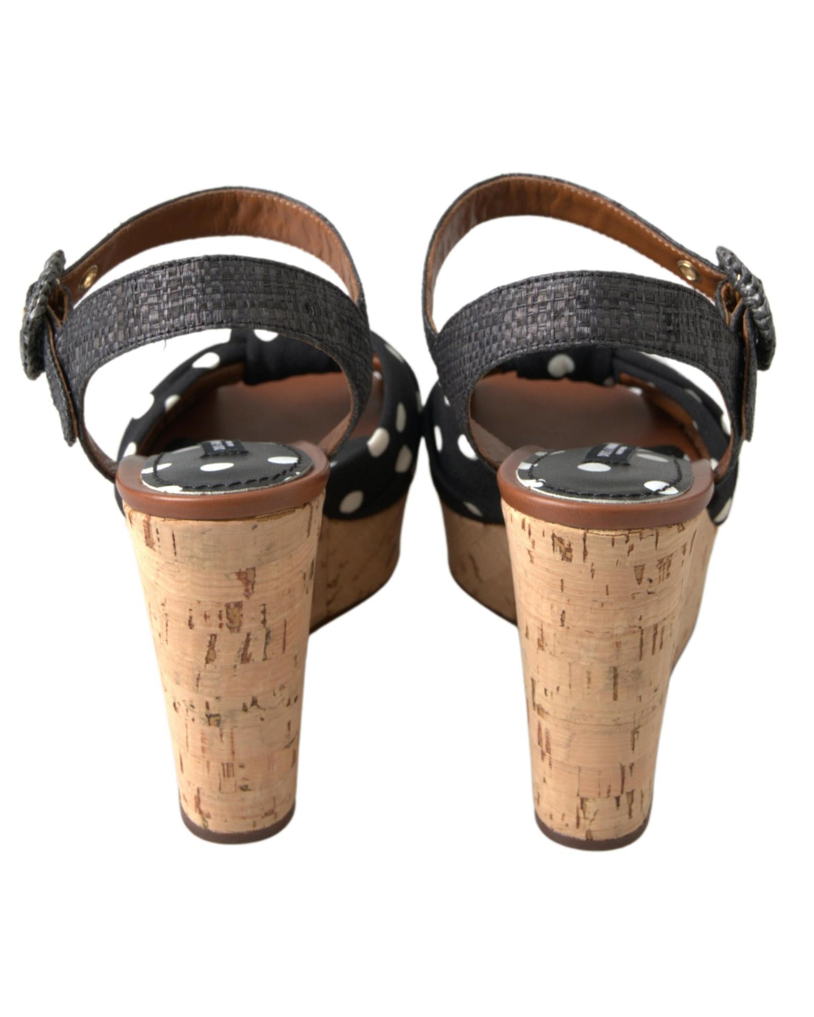 Dolce & Gabbana Women’s Black Wedges Polka Dotted Ankle Strap Shoes Sandals – 37 EU
