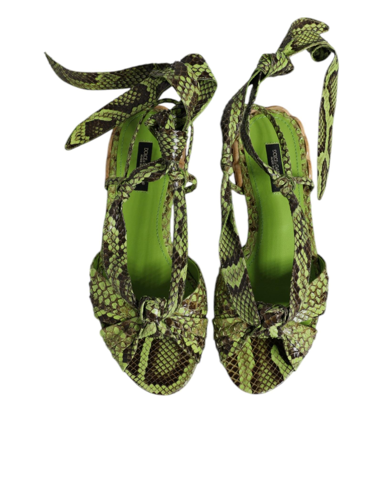 - Green Animal Print Ankle Wrap Sandals by Dolce & Gabbana