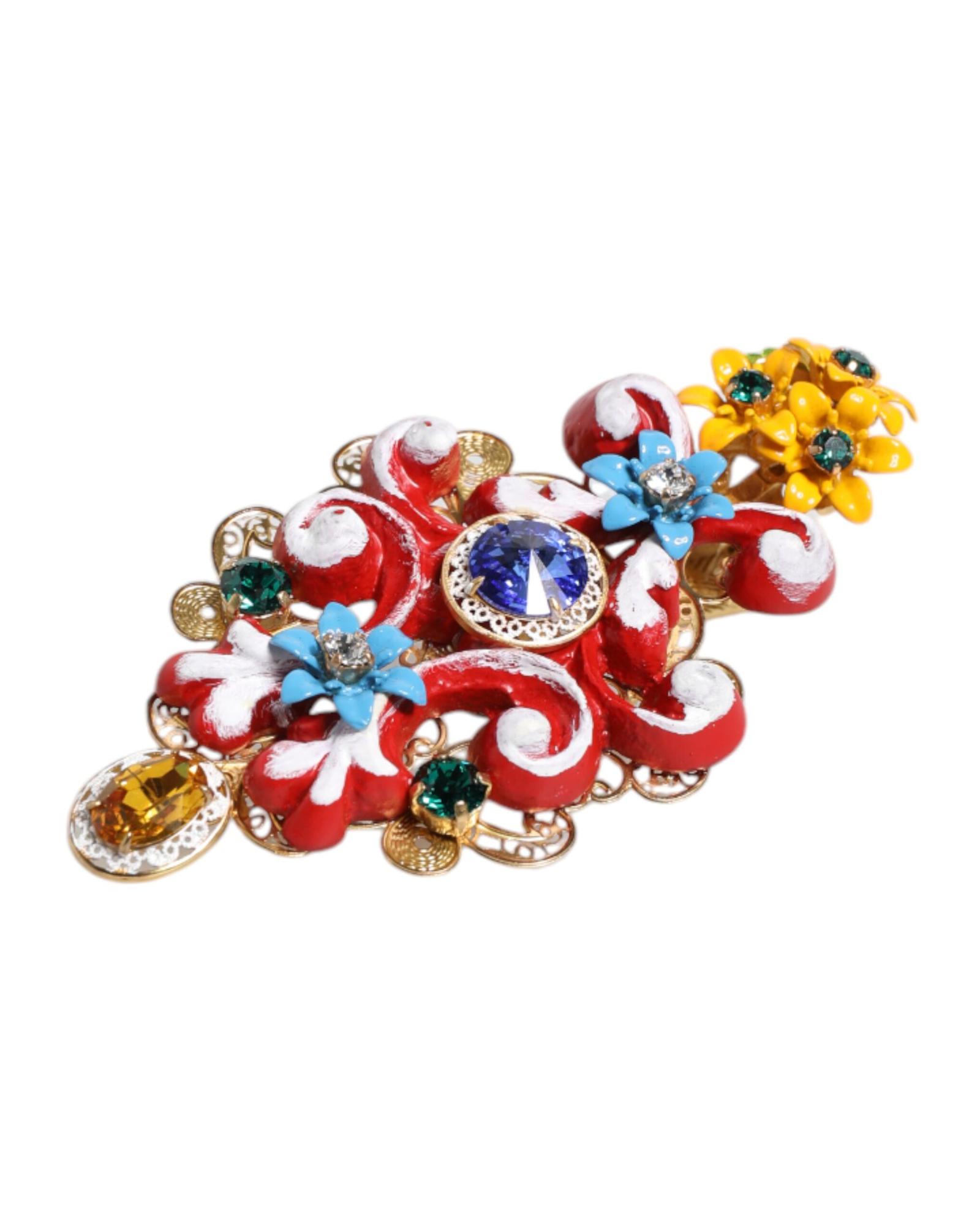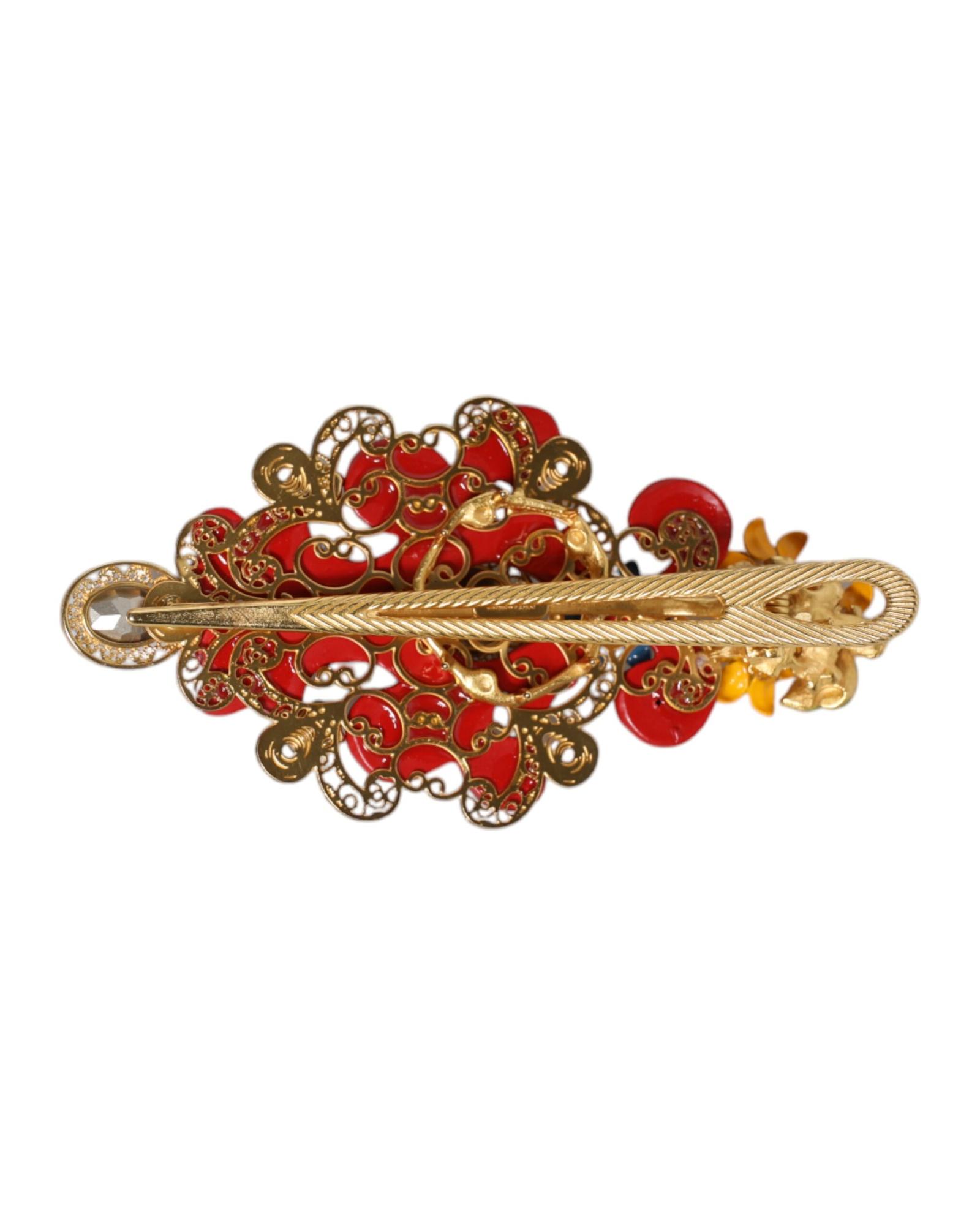Dolce & Gabbana Women’s Multicolor Spring CARRETTO Gold Brass Crystal Hair Clip – One Size