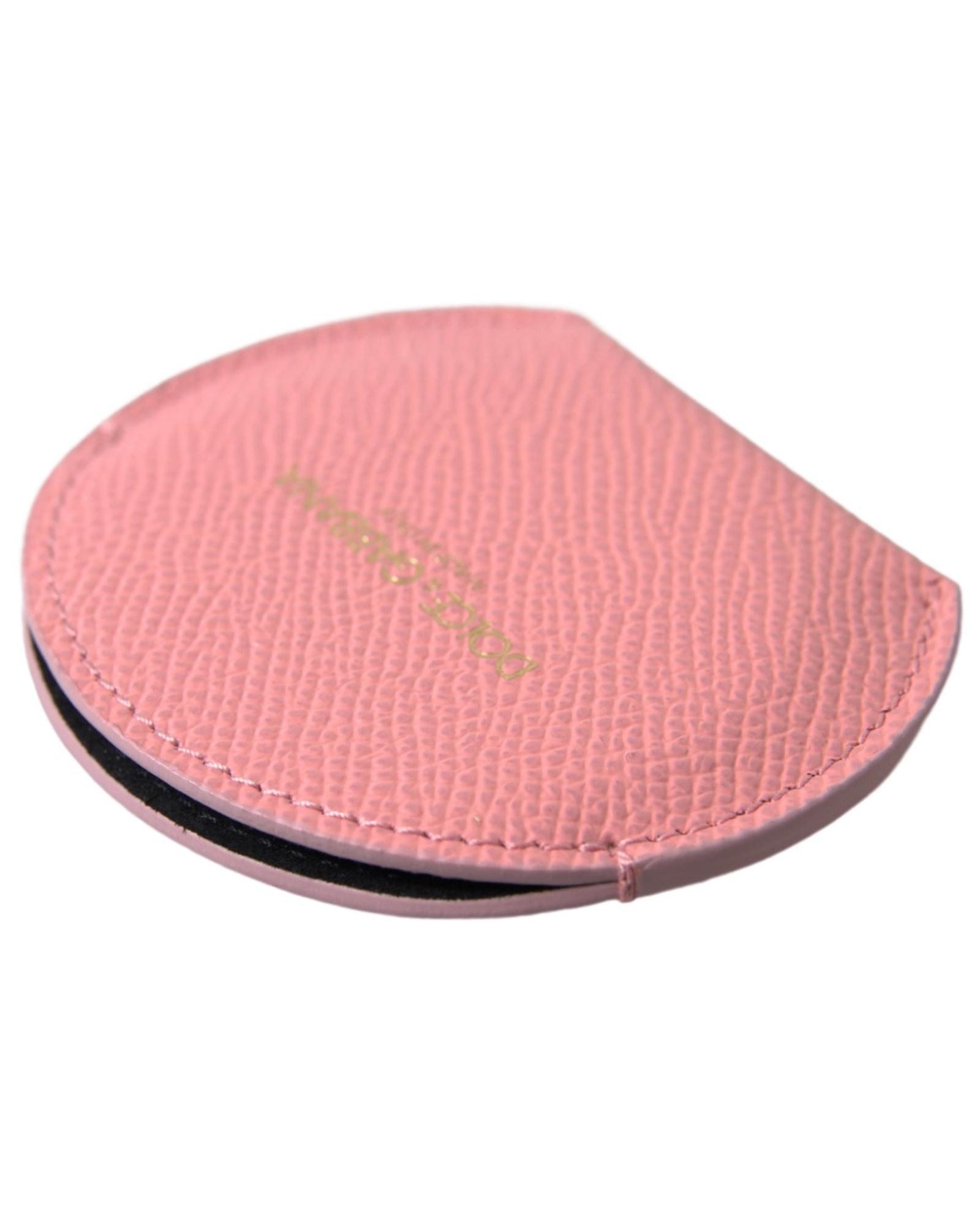 Dolce & Gabbana Women’s Pink Calfskin Leather Round Mirror Holder – One Size